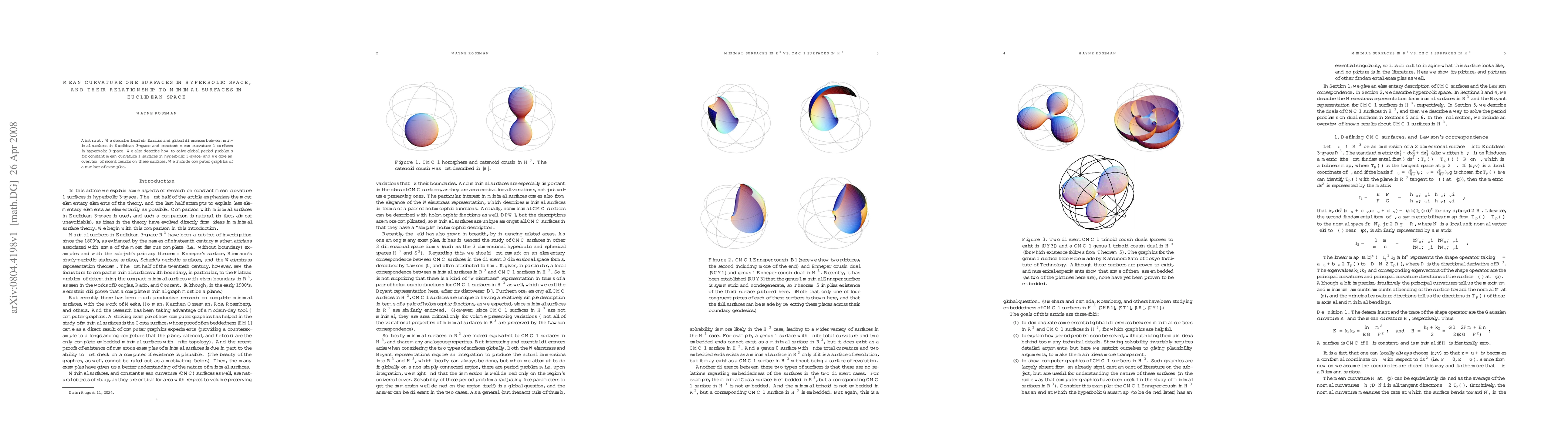 This paper explores the local similarities and global distinctions between minimal surfaces in Euclidean space and surfaces with constant mean curvature one in hyperbolic space, providing solutions to global period problems and summarizing recent findings, supplemented by illustrative computer graphics.
