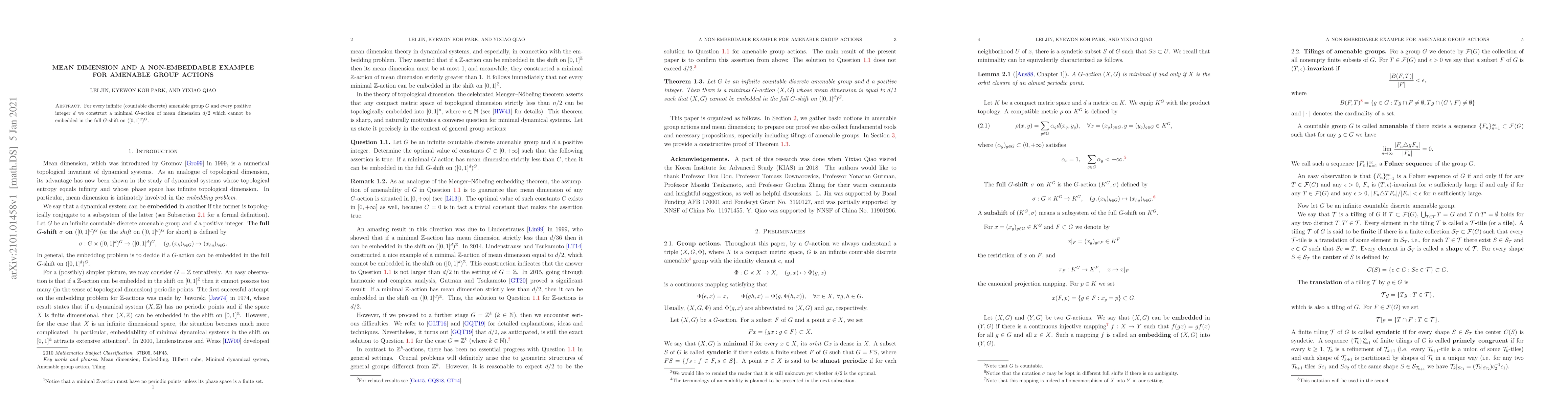 This paper constructs a minimal action of an infinite amenable group $G$ with mean dimension $d/2$ that cannot be embedded into the full $G$-shift on $([0,1]^d)^G$, demonstrating a non-embeddable example.