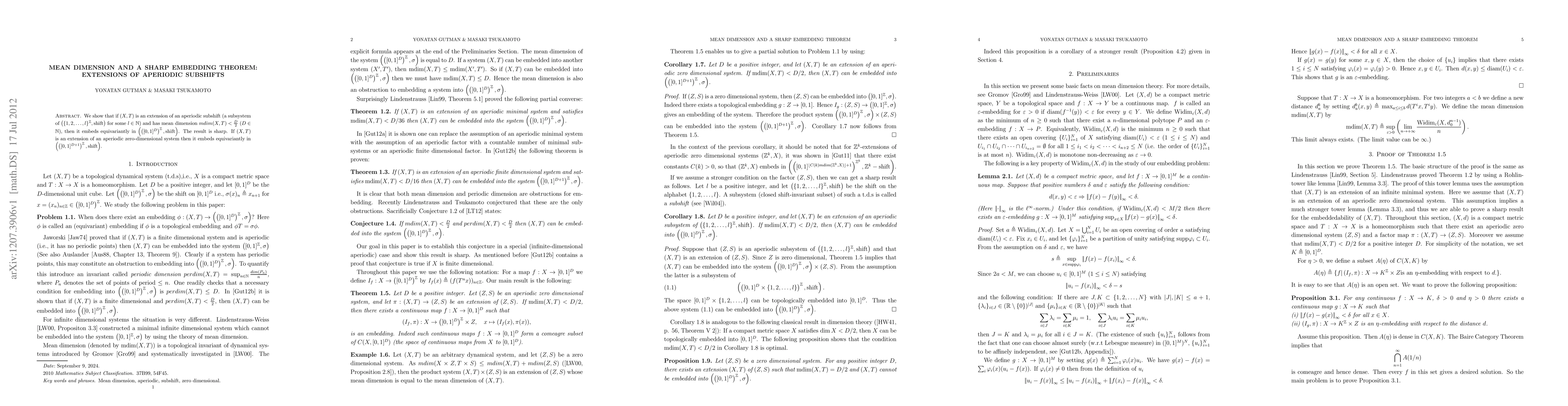 Researchers prove that certain aperiodic systems can be embedded in specific metric spaces, extending existing results in aperiodic subshifts.