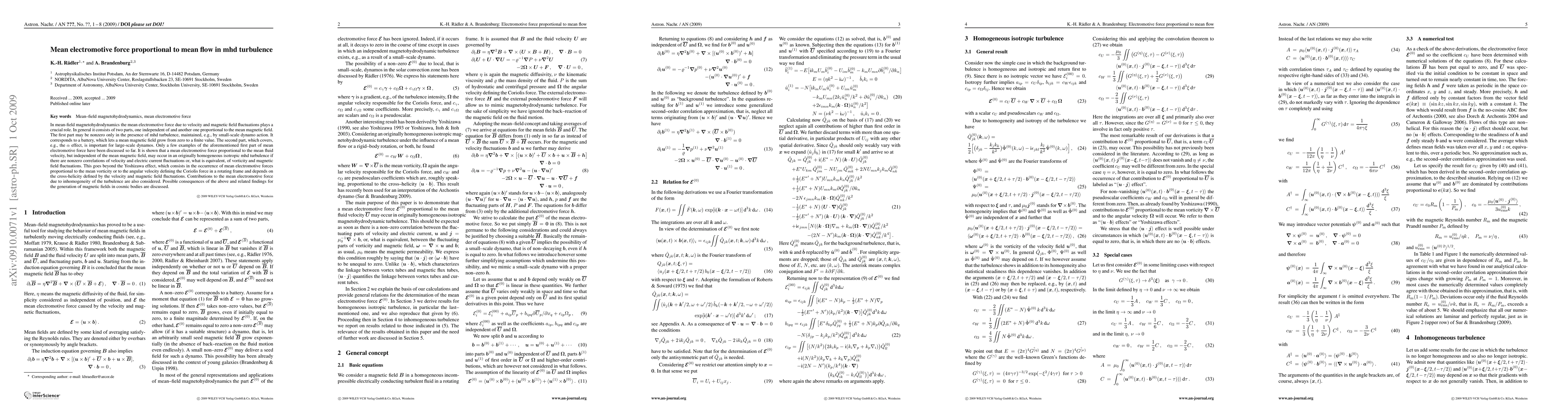 This paper investigates mean electromotive force in magnetohydrodynamic (MHD) turbulence, showing that a force proportional to mean fluid velocity and independent of the mean magnetic field can arise due to correlations between velocity and electric current fluctuations. It extends beyond the Yoshizawa effect and discusses implications for magnetic field generation in cosmic bodies.