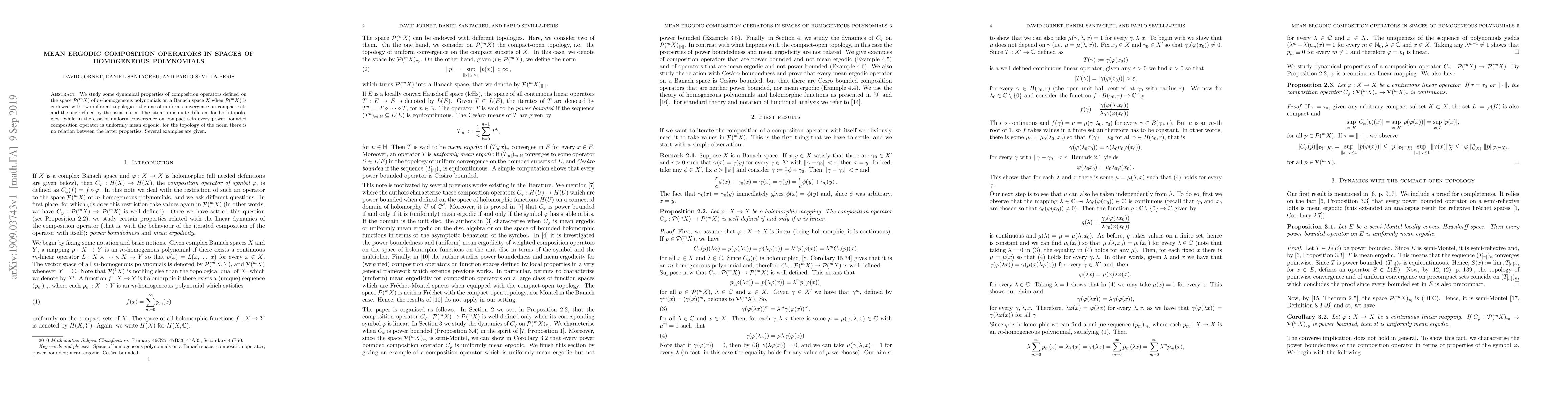 We study some dynamical properties of composition operators defined on the space $\mathcal{P}(^m X)$ of $m$-homogeneous polynomials on a Banach space $X$ when $\mathcal{P}(^m X)$ is endowed with two different topologies: the one of uniform convergence on compact sets and the one defined by the usual norm. The situation is quite different for both topologies: while in the case of uniform convergence on compact sets every power bounded composition operator is uniformly mean ergodic, for the topology of the norm there is no relation between the latter properties. Several examples are given.