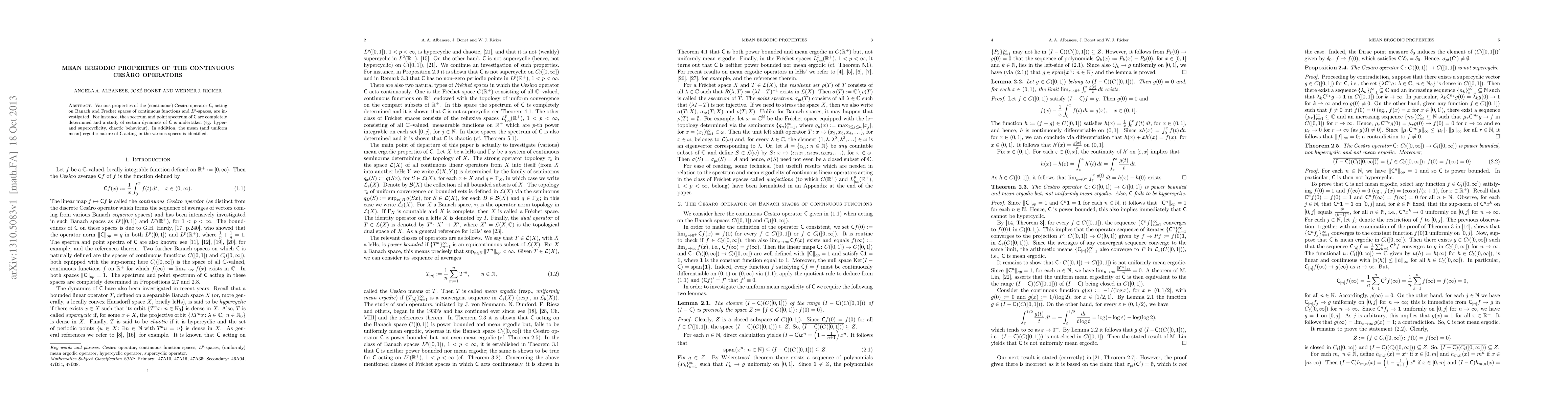 This paper investigates the mean ergodic properties of the continuous Cesàro operator $\mathsf{C}$ in Banach, Fréchet, and $L^p$ spaces, determining its spectrum and point spectrum, and exploring its dynamics, including hyper- and supercyclicity. The study also identifies the mean and uniform mean ergodic nature of $\mathsf{C}$ in these spaces.