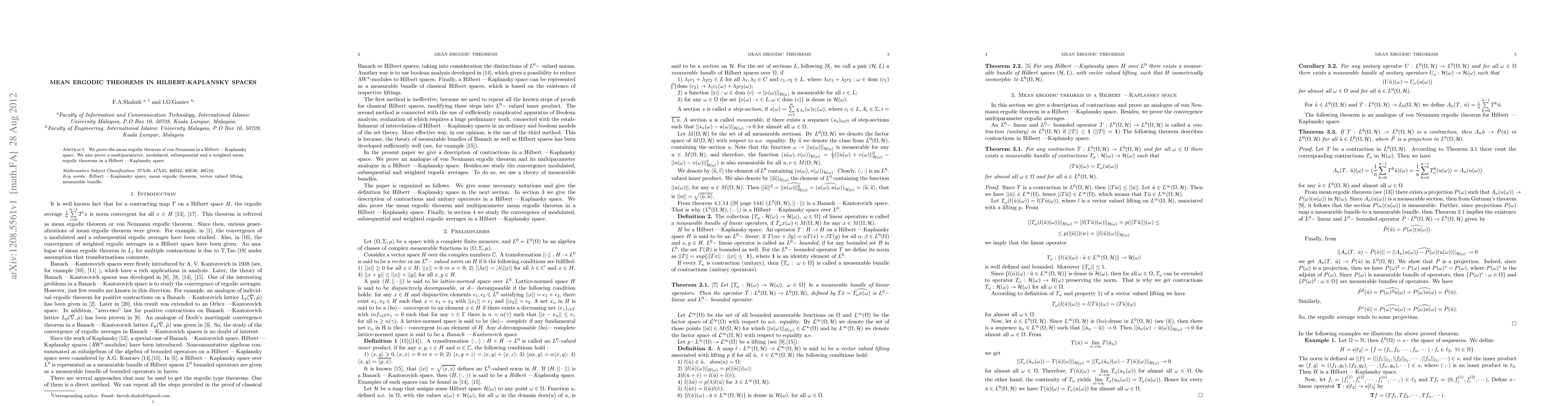 Summary: This paper proves the mean ergodic theorem of von Neumann in Hilbert-Kaplansky spaces, along with extensions including multiparameter, modulated, subsequential, and weighted mean ergodic theorems within the same mathematical framework.