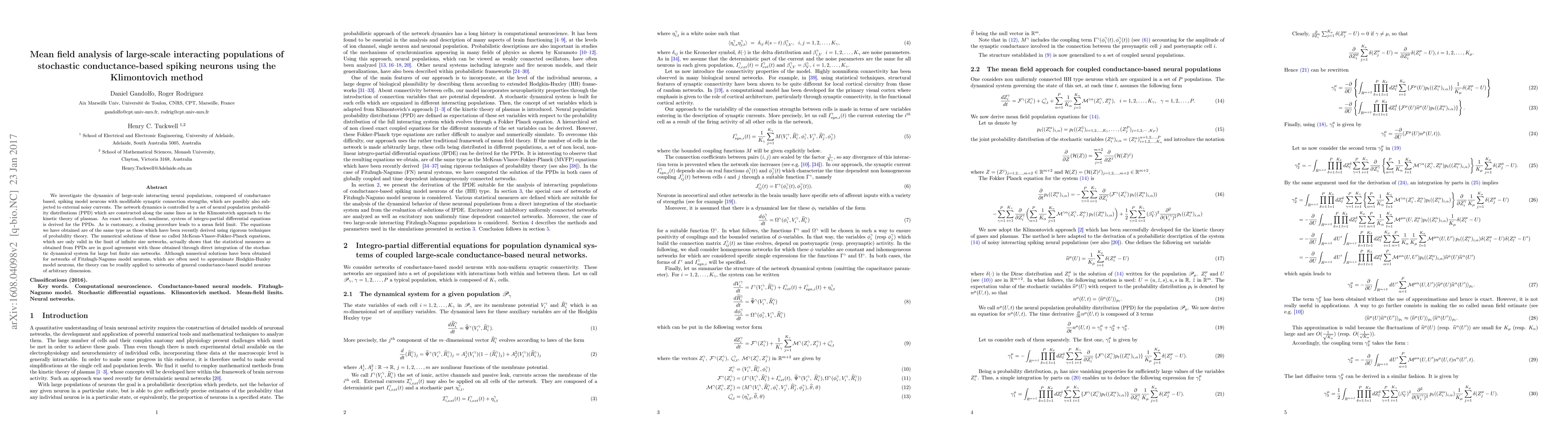 This paper employs mean field analysis and the Klimontovich method to study large-scale neural networks of stochastic conductance-based spiking neurons. The derived integro-partial differential equations for population probability distributions show good agreement with direct simulations for large but finite networks, extending applicability to Hodgkin-Huxley neurons.
