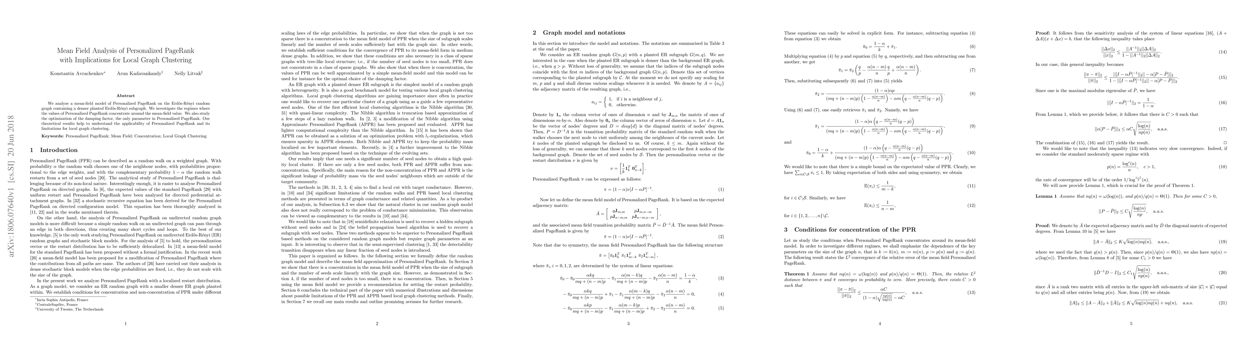 This paper analyzes a mean-field model of Personalized PageRank on a random graph, exploring concentration regimes and optimal damping factor settings. The study reveals insights into Personalized PageRank's effectiveness and limitations for local graph clustering.