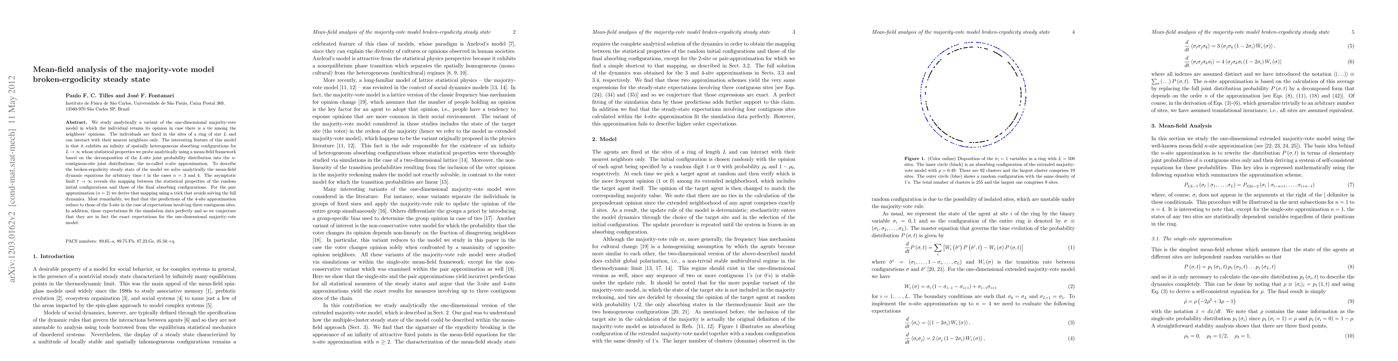 Researchers analyzed a variant of the majority-vote model with breaking ergodicity, showing that its broken-ergodicity steady state can be described using mean-field equations, leading to unexpected similarities between approximations for smaller and larger system sizes.