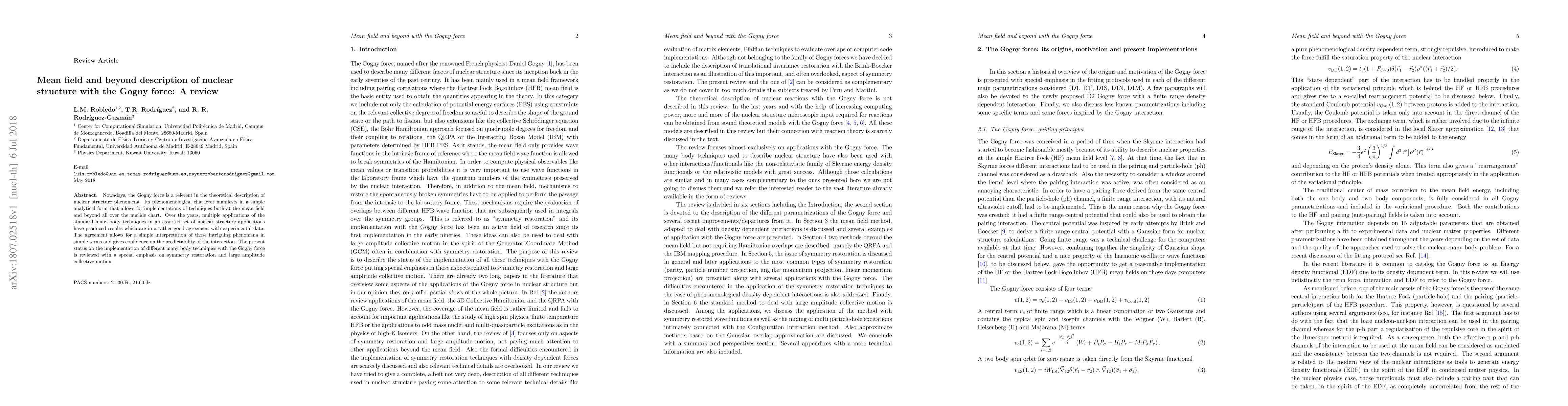 Nowadays, the Gogny force is a referent in the theoretical description of nuclear structure phenomena. Its phenomenological character manifests in a simple analytical form that allows for implementations of techniques both at the mean field and beyond all over the nuclide chart. Over the years, multiple applications of the standard many-body techniques in an assorted set of nuclear structure applications have produced results which are in a rather good agreement with experimental data. The agreement allows for a simple interpretation of those intriguing phenomena in simple terms and gives confidence on the predictability of the interaction. The present status on the implementation of different many body techniques with the Gogny force is reviewed with a special emphasis on symmetry restoration and large amplitude collective motion.