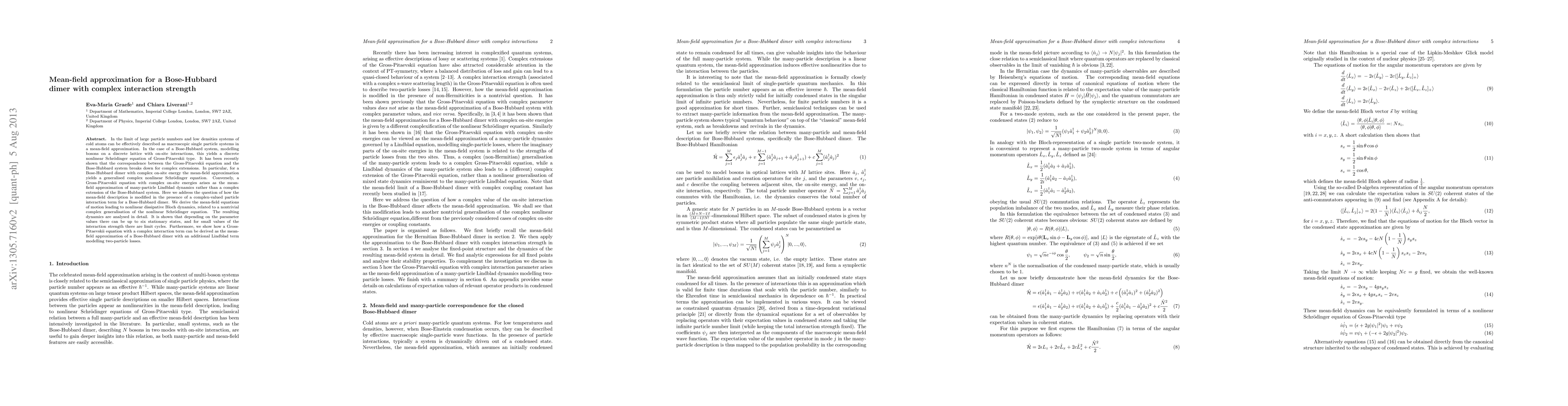 This paper investigates the mean-field approximation for a Bose-Hubbard dimer with complex interaction strength, deriving a generalised complex nonlinear Schrödinger equation. It explores the dynamics, revealing stationary states and limit cycles, and shows how a Gross-Pitaevskii equation with complex terms emerges from Lindblad dynamics modelling two-particle losses.