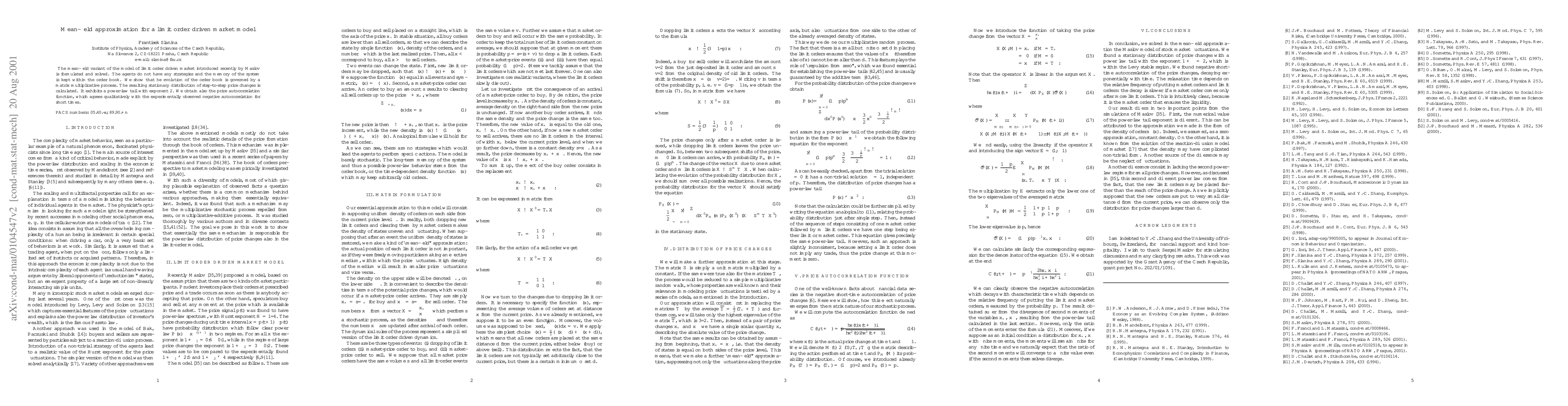 Researchers developed a model for limit order-driven markets that shows a power-law tail in price changes with an exponent of 2 and negative autocorrelation for short times.