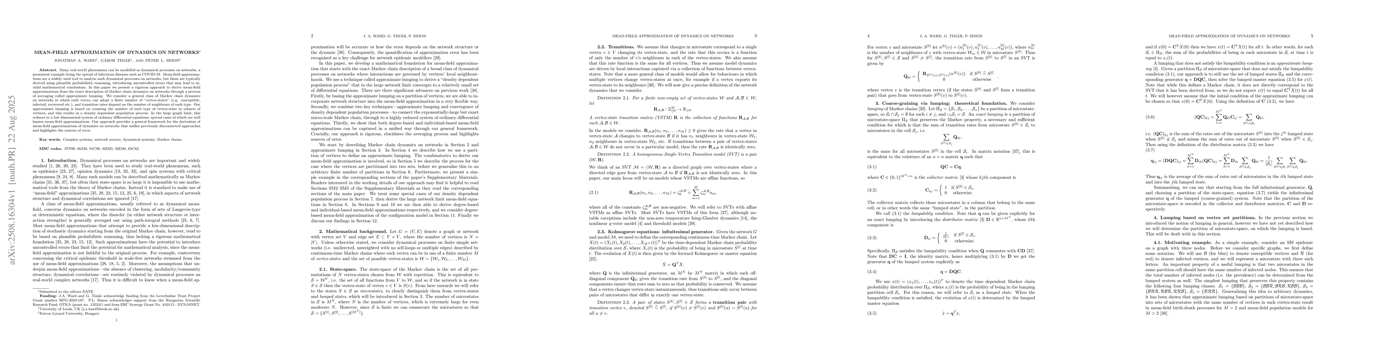 Many real-world phenomena can be modelled as dynamical processes on networks, a prominent example being the spread of infectious diseases such as COVID-19. Mean-field approximations are a widely used tool to analyse such dynamical processes on networks, but these are typically derived using plausible probabilistic reasoning, introducing uncontrolled errors that may lead to invalid mathematical conclusions. In this paper we present a rigorous approach to derive mean-field approximations from the exact description of Markov chain dynamics on networks through a process of averaging called approximate lumping. We consider a general class of Markov chain dynamics on networks in which each vertex can adopt a finite number of ``vertex-states'' (e.g. susceptible, infected, recovered etc.), and transition rates depend on the number of neighbours of each type. Our approximate lumping is based on counting the number of each type of vertex-state in subsets of vertices, and this results in a density dependent population process. In the large graph limit, this reduces to a low dimensional system of ordinary differential equations, special cases of which are well known mean-field approximations. Our approach provides a general framework for the derivation of mean-field approximations of dynamics on networks that unifies previously disconnected approaches and highlights the sources of error.