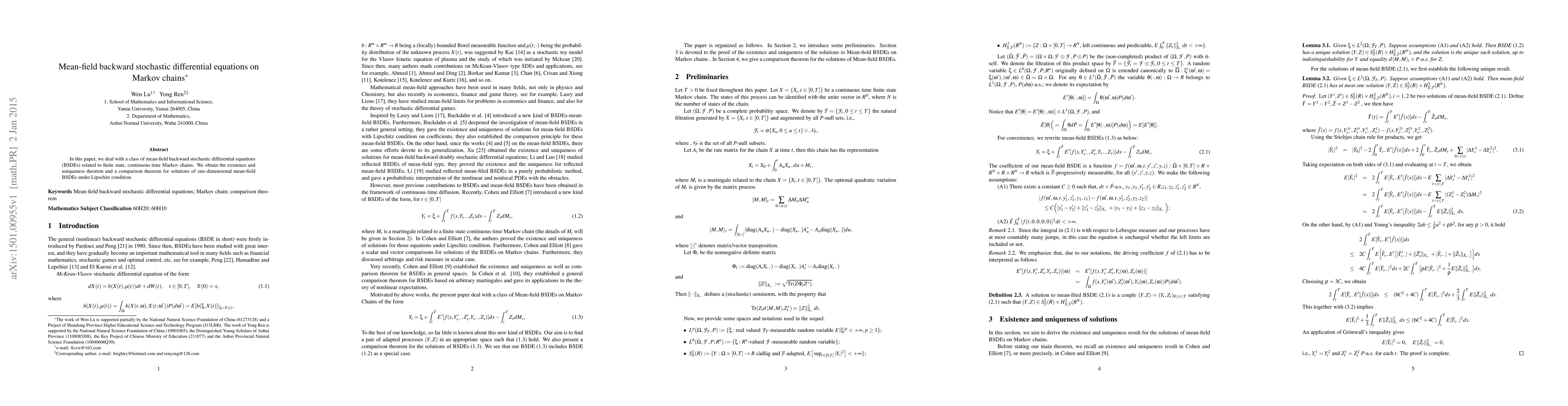 Summary: This paper investigates mean-field backward stochastic differential equations (BSDEs) linked to finite state Markov chains, establishing existence, uniqueness, and a comparison theorem for one-dimensional solutions under Lipschitz conditions.