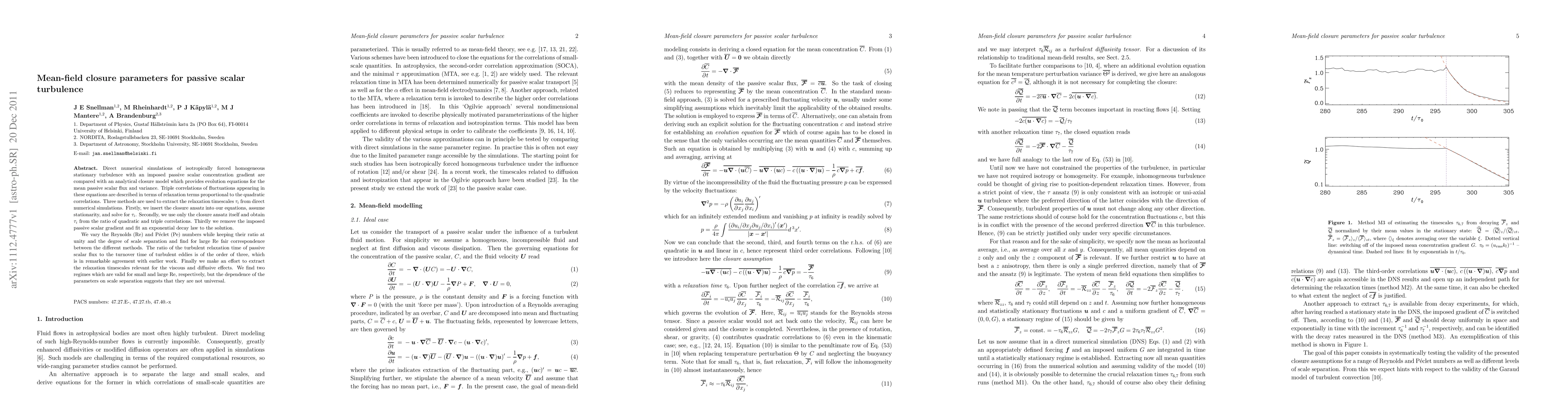 Direct numerical simulations of isotropically forced homogeneous stationary turbulence with an imposed passive scalar concentration gradient are compared with an analytical closure model which provides evolution equations for the mean passive scalar flux and variance. Triple correlations of fluctuations appearing in these equations are described in terms of relaxation terms proportional to the quadratic correlations. Three methods are used to extract the relaxation timescales tau_i from direct numerical simulations. Firstly, we insert the closure ansatz into our equations, assume stationarity, and solve for tau_i. Secondly, we use only the closure ansatz itself and obtain tau_i from the ratio of quadratic and triple correlations. Thirdly we remove the imposed passive scalar gradient and fit an exponential decay law to the solution. We vary the Reynolds (Re) and P\'eclet (Pe) numbers while keeping their ratio at unity and the degree of scale separation and find for large Re fair correspondence between the different methods. The ratio of the turbulent relaxation time of passive scalar flux to the turnover time of turbulent eddies is of the order of three, which is in remarkable agreement with earlier work. Finally we make an effort to extract the relaxation timescales relevant for the viscous and diffusive effects. We find two regimes which are valid for small and large Re, respectively, but the dependence of the parameters on scale separation suggests that they are not universal.