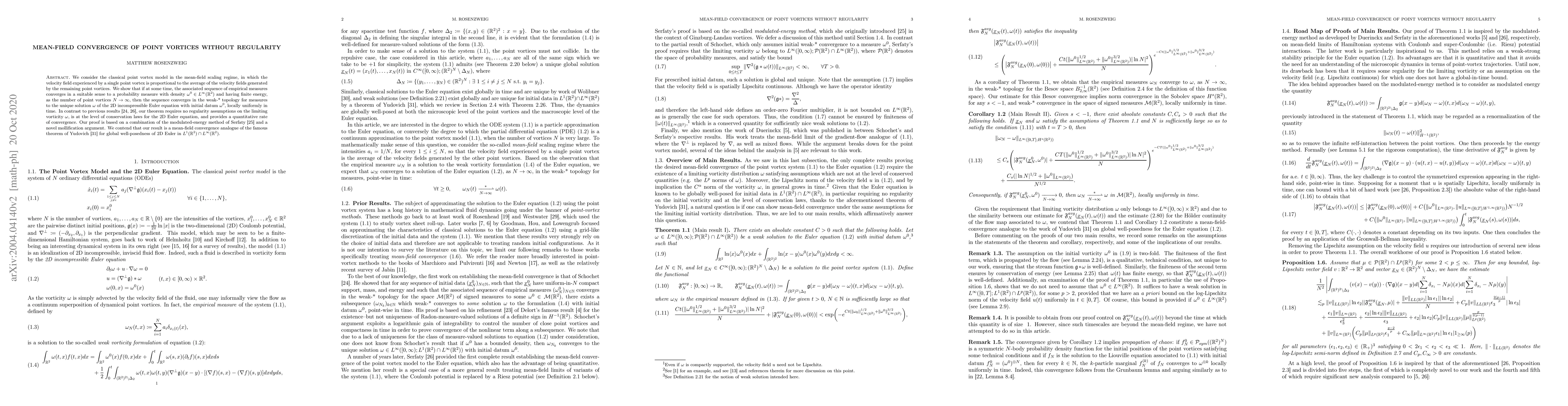 Researchers prove that point vortices in a 2D fluid system converge to the solution of the Euler equation under certain conditions, without requiring regularity assumptions on the limiting vorticity.