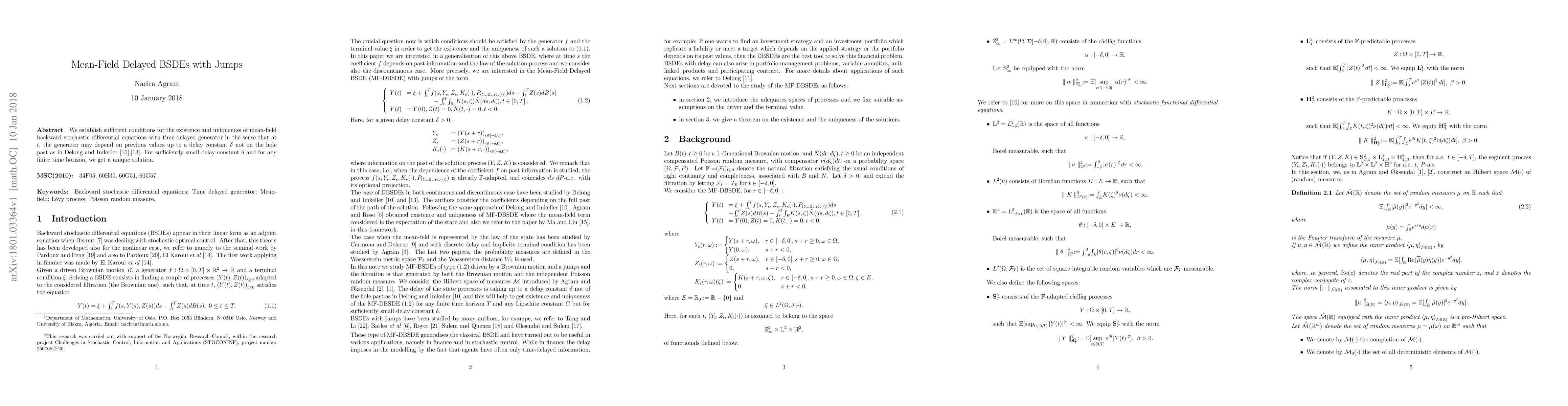We establish sufficient conditions for the existence and uniqueness of mean-field backward stochastic differential equations with time delayed generator in the sense that at t, the generator may depend on previous values up to a delay constant {\delta} not on the hole past as in Delong and Imkeller [10], [13]. For sufficiently small delay constant {\delta} and for any finite time horizon, we get a unique solution.
