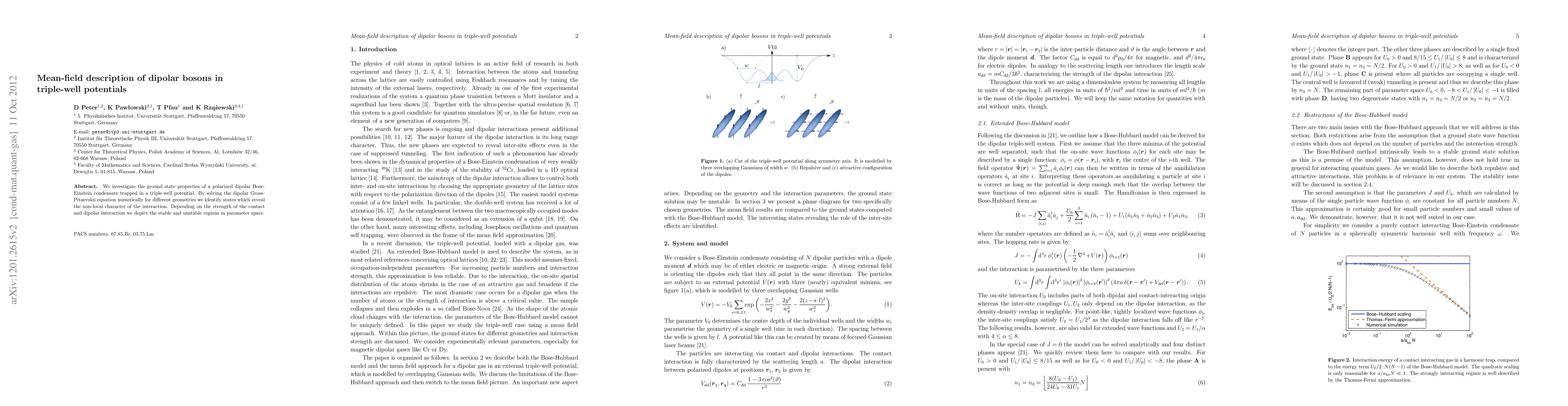 This study is significant for understanding the behavior of ultracold gases with high magnetic moments, like Cr or Dy, in triple-well potentials, providing insights into dipolar inter-site interactions.