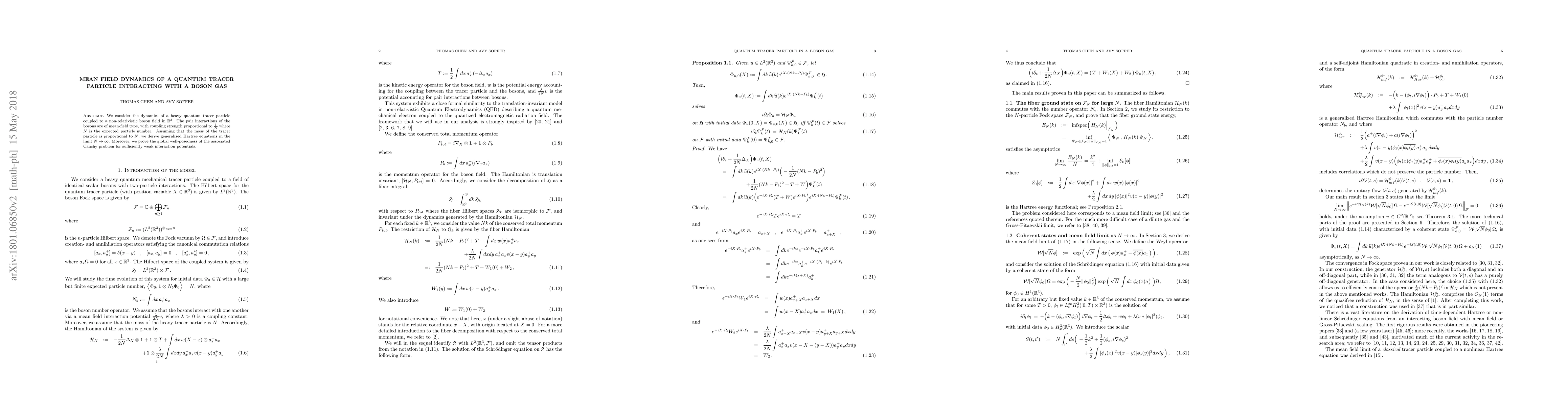 We consider the dynamics of a heavy quantum tracer particle coupled to a non-relativistic boson field in ${\mathbb R}^3$. The pair interactions of the bosons are of mean-field type, with coupling strength proportional to $\frac1N$ where $N$ is the expected particle number. Assuming that the mass of the tracer particle is proportional to $N$, we derive generalized Hartree equations in the limit $N\rightarrow\infty$. Moreover, we prove the global well-posedness of the associated Cauchy problem for sufficiently weak interaction potentials.