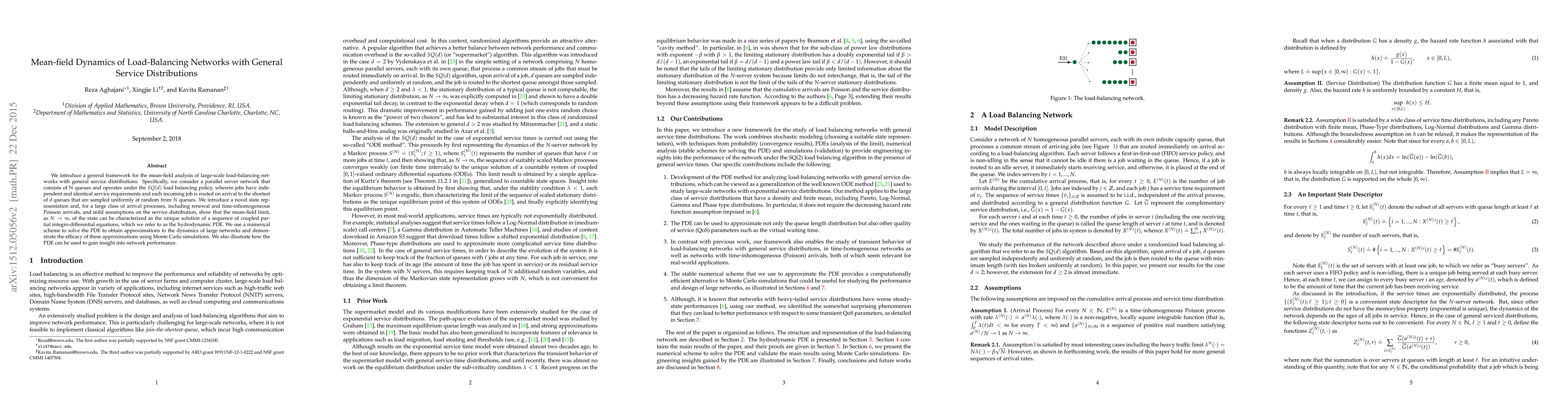 This paper develops a mean-field framework for analyzing large-scale load-balancing networks with general service distributions, showing that the system's dynamics can be described by a set of coupled partial integro-differential equations, and demonstrates the utility of these equations through numerical and simulation methods.
