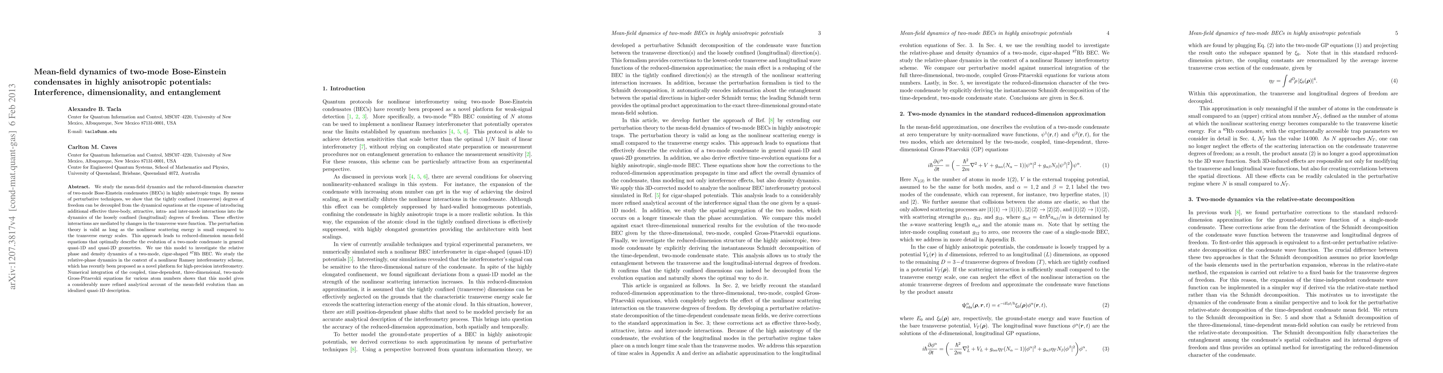We study the mean-field dynamics and the reduced-dimension character of two-mode Bose-Einstein condensates (BECs) in highly anisotropic traps. By means of perturbative techniques, we show that the tightly confined (transverse) degrees of freedom can be decoupled from the dynamical equations at the expense of introducing additional effective three-body, attractive, intra- and inter-mode interactions into the dynamics of the loosely confined (longitudinal) degrees of freedom. These effective interactions are mediated by changes in the transverse wave function. The perturbation theory is valid as long as the nonlinear scattering energy is small compared to the transverse energy scales. This approach leads to reduced-dimension mean-field equations that optimally describe the evolution of a two-mode condensate in general quasi-1D and quasi-2D geometries. We use this model to investigate the relative phase and density dynamics of a two-mode, cigar-shaped $^{87}$Rb BEC. We study the relative-phase dynamics in the context of a nonlinear Ramsey interferometry scheme, which has recently been proposed as a novel platform for high-precision interferometry. Numerical integration of the coupled, time-dependent, three-dimensional, two-mode Gross-Pitaevskii equations for various atom numbers shows that this model gives a considerably more refined analytical account of the mean-field evolution than an idealized quasi-1D description.