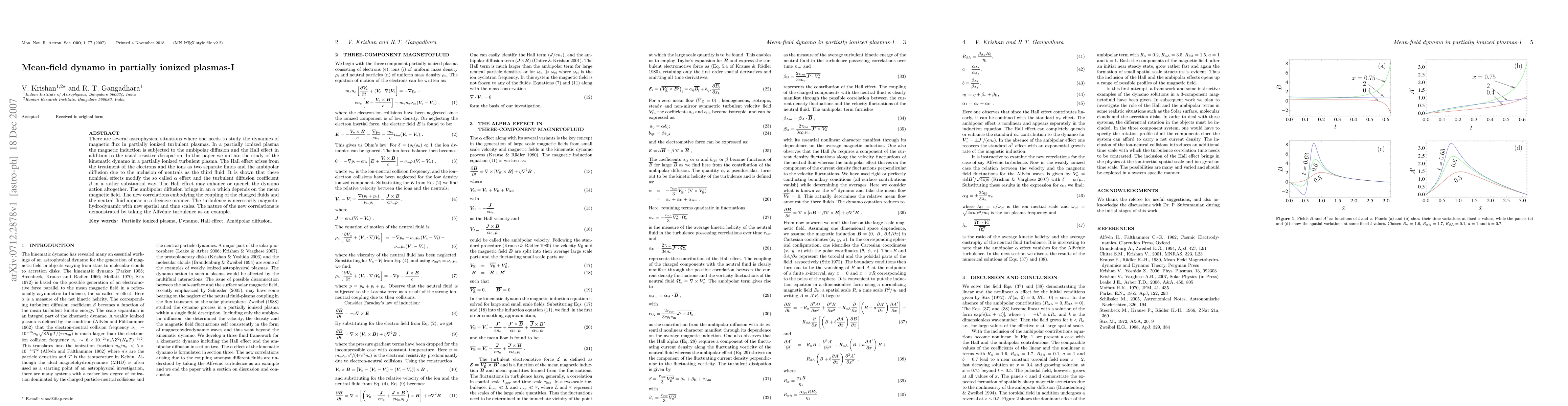 There are several astrophysical situations where one needs to study the dynamics of magnetic flux in partially ionized turbulent plasmas. In a partially ionized plasma the magnetic induction is subjected to the ambipolar diffusion and the Hall effect in addition to the usual resistive dissipation. In this paper we initiate the study of the kinematic dynamo in a partially ionized turbulent plasma. The Hall effect arises from the treatment of the electrons and the ions as two separate fluids and the ambipolar diffusion due to the inclusion of neutrals as the third fluid. It is shown that these nonideal effects modify the so called $\alpha$ effect and the turbulent diffusion coefficient $\beta$ in a rather substantial way. The Hall effect may enhance or quench the dynamo action altogether. The ambipolar diffusion brings in an $\alpha$ which depends on the mean magnetic field. The new correlations embodying the coupling of the charged fluids and the neutral fluid appear in a decisive manner. The turbulence is necessarily magnetohydrodynamic with new spatial and time scales. The nature of the new correlations is demonstrated by taking the Alfv\'enic turbulence as an example.