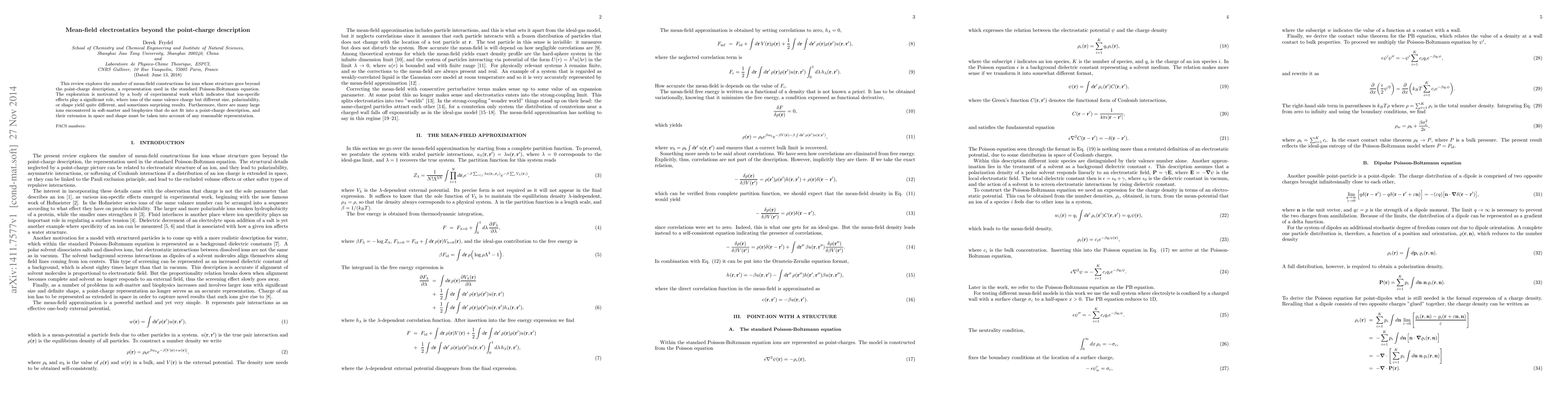 This review examines mean-field electrostatic models that extend beyond the point-charge description, addressing the ion-specific effects observed in experiments and the complexities of large ions in soft-matter and biophysics. It highlights the need for more sophisticated representations to accurately capture the behavior of ions with extended structures.