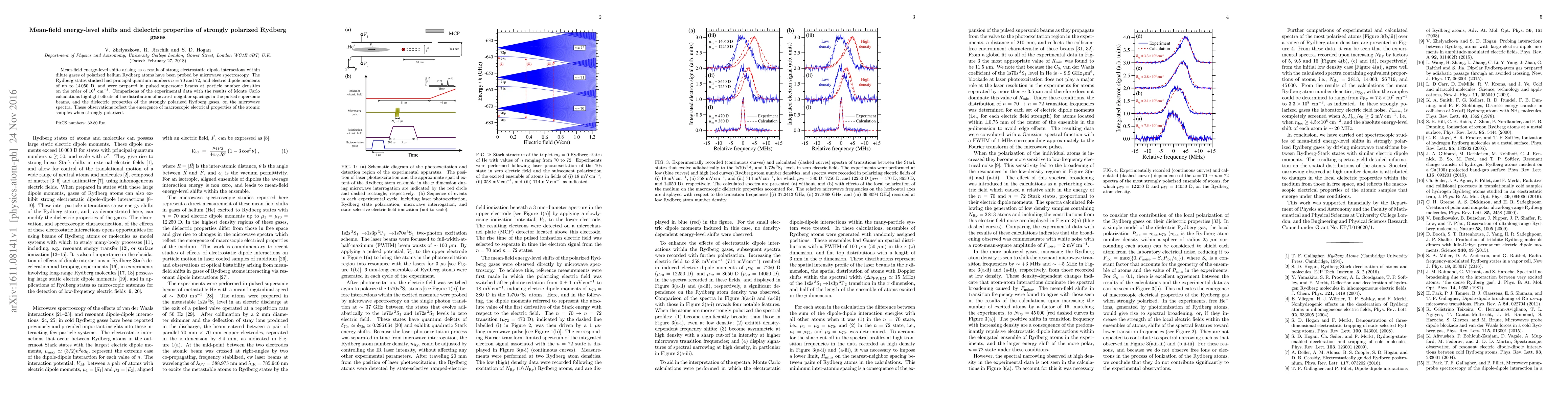 The research investigates mean-field energy-level shifts in strongly polarized helium Rydberg atom gases via microwave spectroscopy. Findings reveal that dielectric properties and nearest-neighbor spacing distributions in pulsed supersonic beams significantly impact microwave spectra, demonstrating macroscopic electrical behavior in atomic samples under strong polarization.
