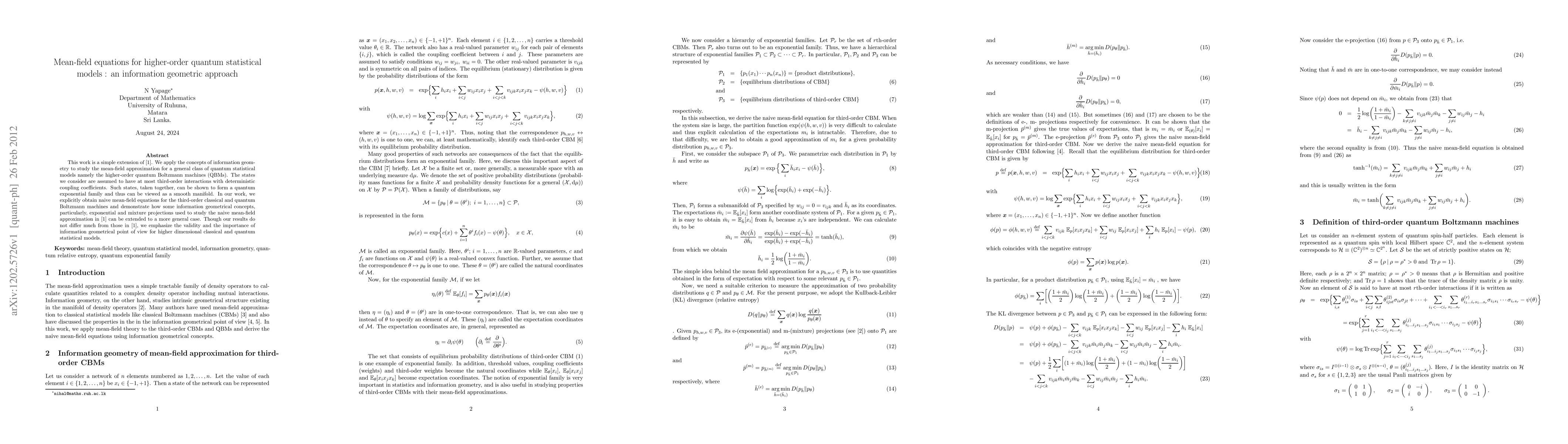 This research paper applies information geometry to study mean-field equations for higher-order quantum statistical models, particularly third-order classical and quantum Boltzmann machines, providing a general framework for understanding these complex systems.