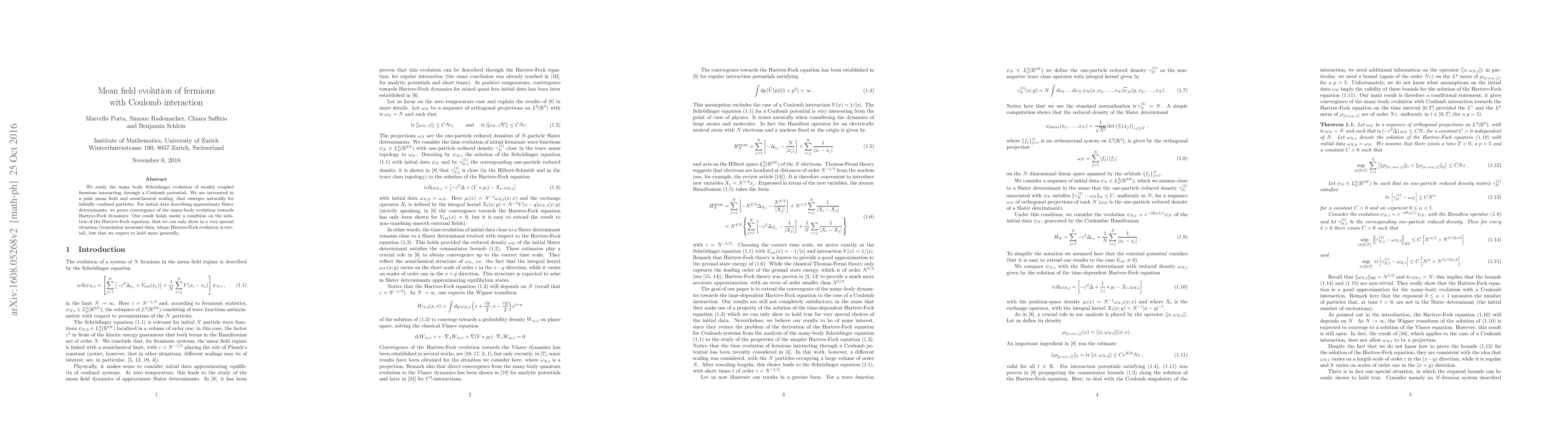Research shows that when weakly coupled fermions interact through a Coulomb potential, their many-body evolution converges to Hartree-Fock dynamics under certain conditions, offering insights into the behavior of particles in complex systems.
