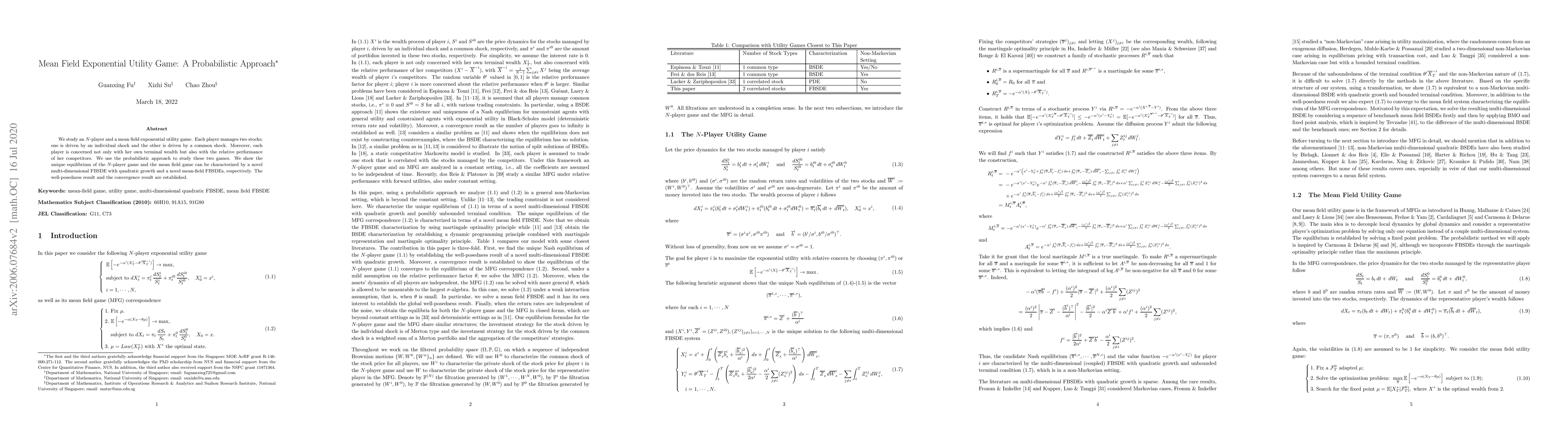 We study an $N$-player and a mean field exponential utility game. Each player manages two stocks; one is driven by an individual shock and the other is driven by a common shock. Moreover, each player is concerned not only with her own terminal wealth but also with the relative performance of her competitors. We use the probabilistic approach to study these two games. We show the unique equilibrium of the $N$-player game and the mean field game can be characterized by a novel multi-dimensional FBSDE with quadratic growth and a novel mean-field FBSDEs, respectively. The well-posedness result and the convergence result are established.