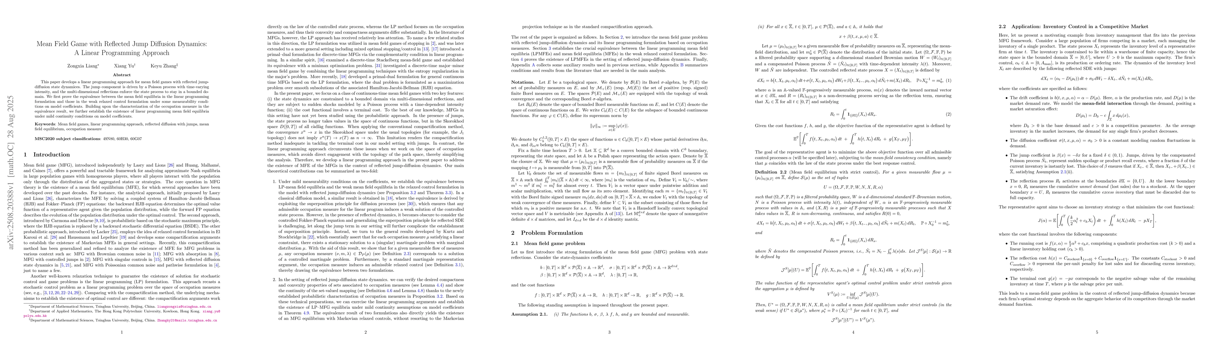 This paper develops a linear programming approach for mean field games with reflected jump-diffusion state dynamices. The jump component is driven by a Poisson process with time-varying intensity, and the multi-dimensional reflections enforce the state process to stay in a bounded domain. We first prove the equivalence between the mean field equilibria in the linear programming formulation and those in the weak relaxed control formulation under some measurability conditions on model coefficients. Building upon the characterization of the occupation measure in the equivalence result, we further establish the existence of linear programming mean field equilibria under mild continuity conditions on model coefficients.