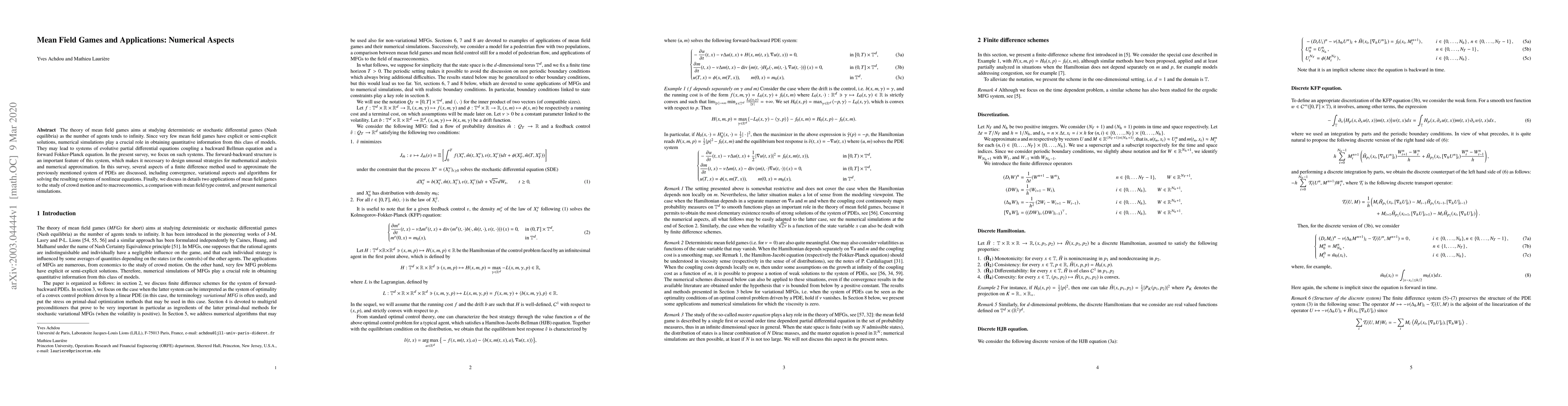This paper surveys numerical methods for solving mean field games, focusing on finite difference approximations for coupled PDEs. It discusses convergence, variational aspects, and algorithms for nonlinear systems, and applies these methods to crowd motion and macroeconomics.