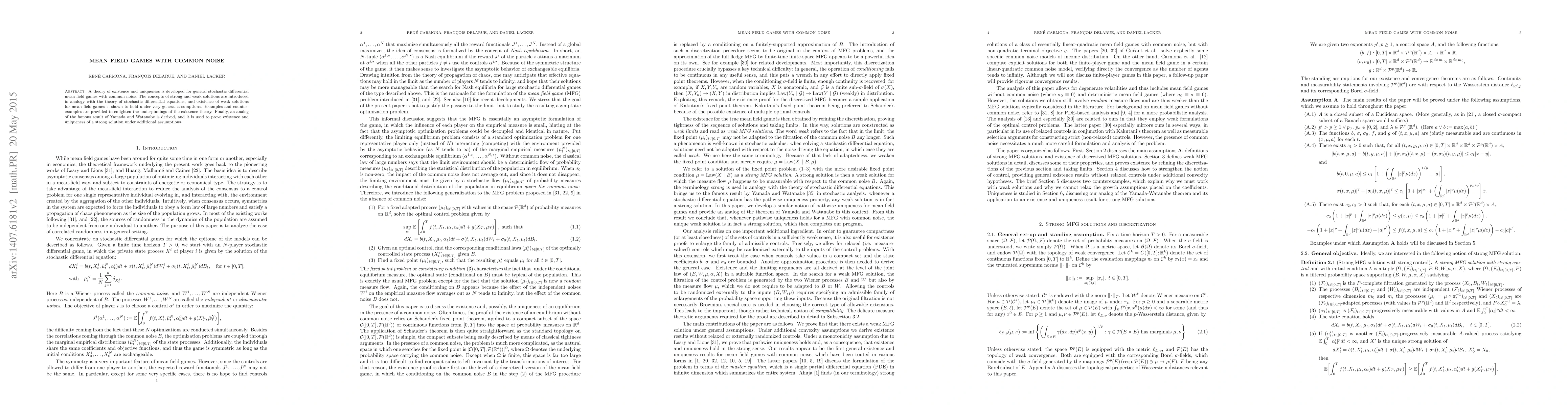 This paper develops a theory for stochastic differential mean field games with common noise, proving existence and uniqueness of solutions under general conditions, and providing both examples and a result analogous to Yamada and Watanabe's theorem to support the theory.