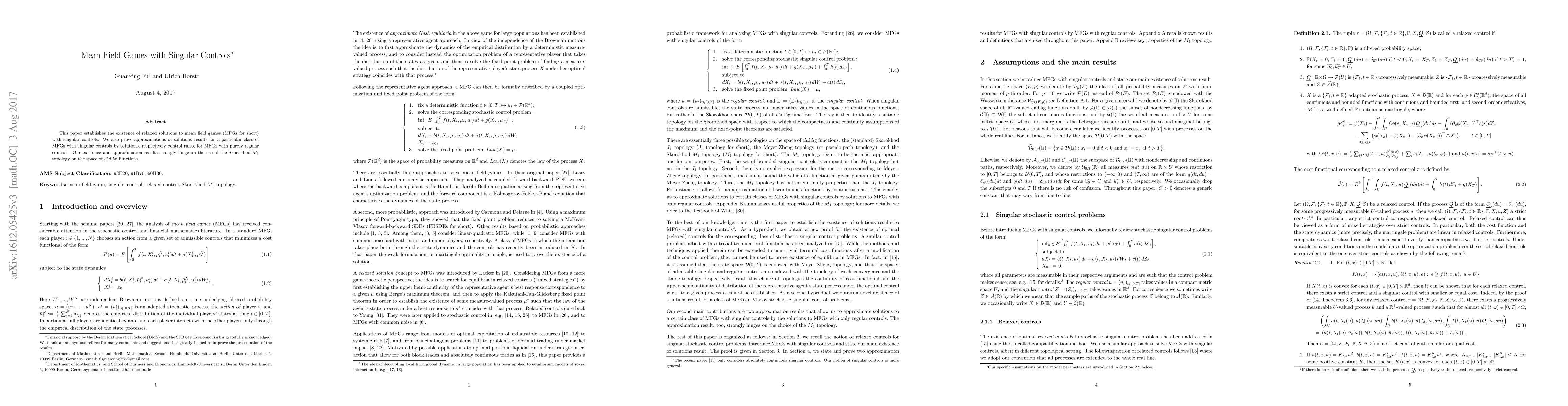 This paper proves the existence of relaxed solutions for mean field games with singular controls and demonstrates approximation results for a specific class of such games using solutions from mean field games with regular controls, relying on Skorokhod $M_1$ topology for analysis.