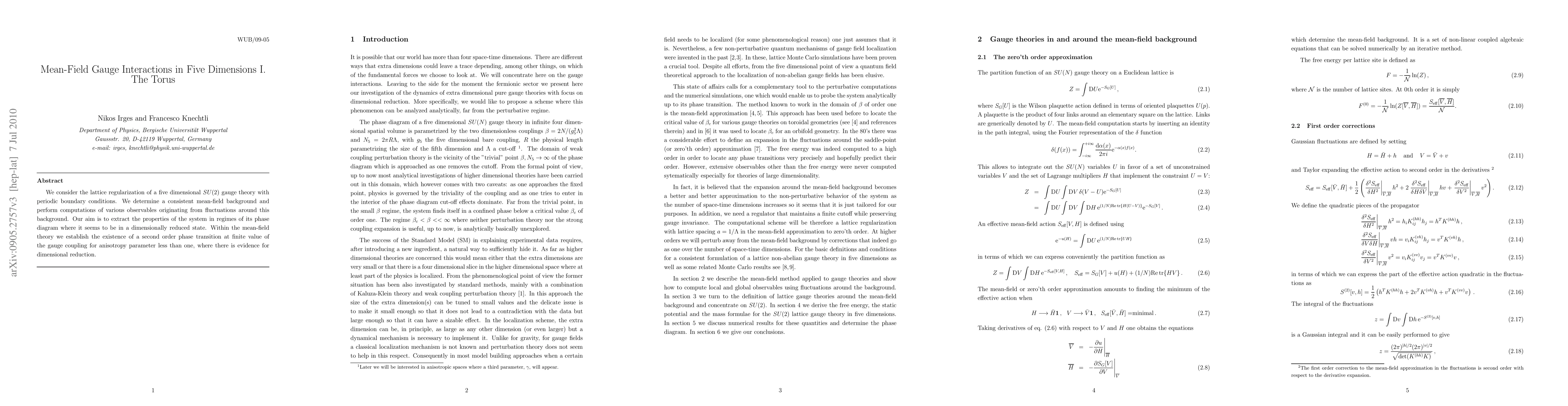 We consider the lattice regularization of a five dimensional SU(2) gauge theory with periodic boundary conditions. We determine a consistent mean-field background and perform computations of various observables originating from fluctuations around this background. Our aim is to extract the properties of the system in regimes of its phase diagram where it seems to be in a dimensionally reduced state. Within the mean-field theory we establish the existence of a second order phase transition at finite value of the gauge coupling for anisotropy parameter less than one, where there is evidence for dimensional reduction.