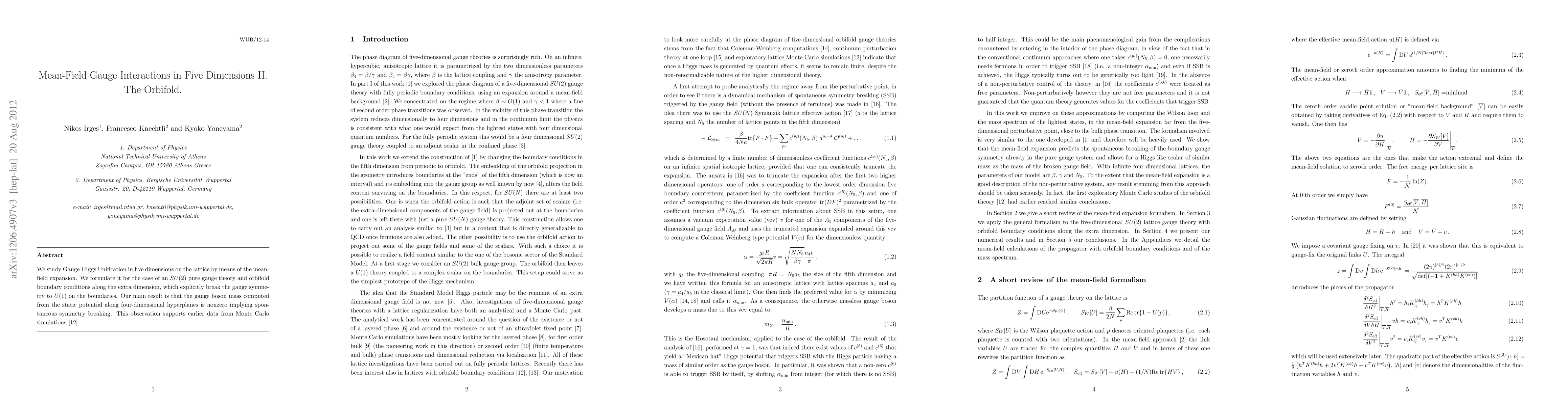 We study Gauge-Higgs Unification in five dimensions on the lattice by means of the mean-field expansion. We formulate it for the case of an SU(2) pure gauge theory and orbifold boundary conditions along the extra dimension, which explicitly break the gauge symmetry to U(1) on the boundaries. Our main result is that the gauge boson mass computed from the static potential along four-dimensional hyperplanes is nonzero implying spontaneous symmetry breaking. This observation supports earlier data from Monte Carlo simulations [12].
