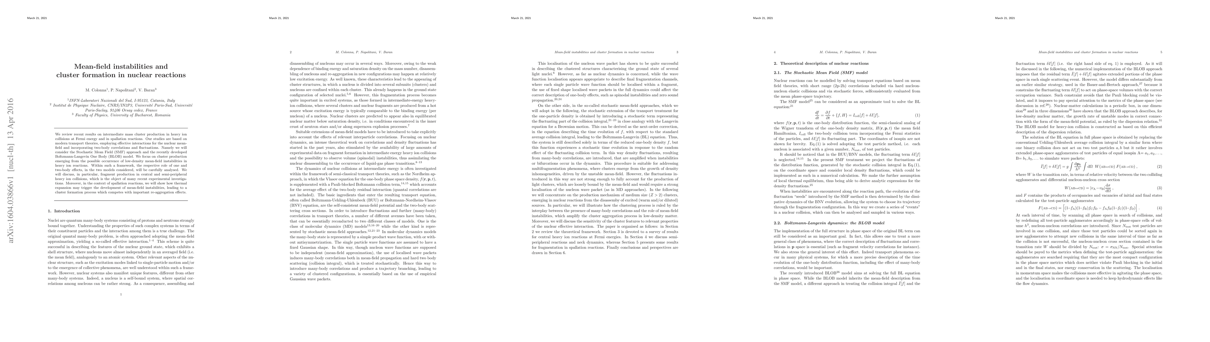 We review recent results on intermediate mass cluster production in heavy ion collisions at Fermi energy and in spallation reactions. Our studies are based on modern transport theories, employing effective interactions for the nuclear mean-field and incorporating two-body correlations and fluctuations. Namely we will consider the Stochastic Mean Field (SMF) approach and the recently developed Boltzmann-Langevin One Body (BLOB) model. We focus on cluster production emerging from the possible occurrence of low-density mean-field instabilities in heavy ion reactions. Within such a framework, the respective role of one and two-body effects, in the two models considered, will be carefully analysed. We will discuss, in particular, fragment production in central and semi-peripheral heavy ion collisions, which is the object of many recent experimental investigations. Moreover, in the context of spallation reactions, we will show how thermal expansion may trigger the development of mean-field instabilities, leading to a cluster formation process which competes with important re-aggregation effects.