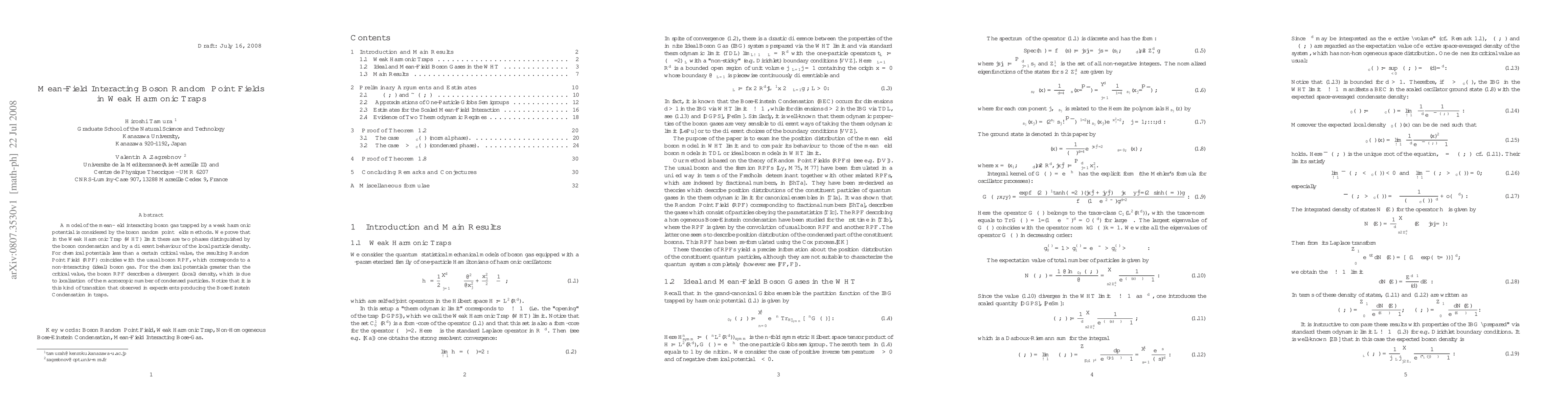 This paper explores a mean-field model of interacting bosons in weak harmonic traps using boson random point fields, revealing two distinct phases: one with condensation and divergent local density for higher chemical potentials, akin to Bose-Einstein Condensation observed in experiments.
