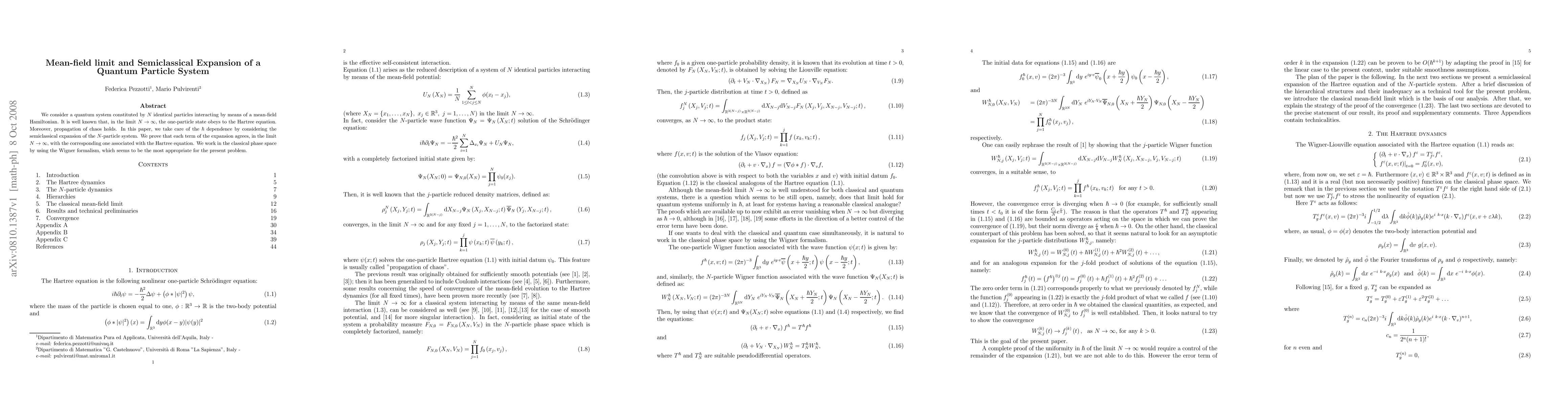 This paper studies a quantum system of N particles interacting through a mean-field Hamiltonian, showing that its semiclassical expansion agrees with the Hartree equation in the limit N approaches infinity.