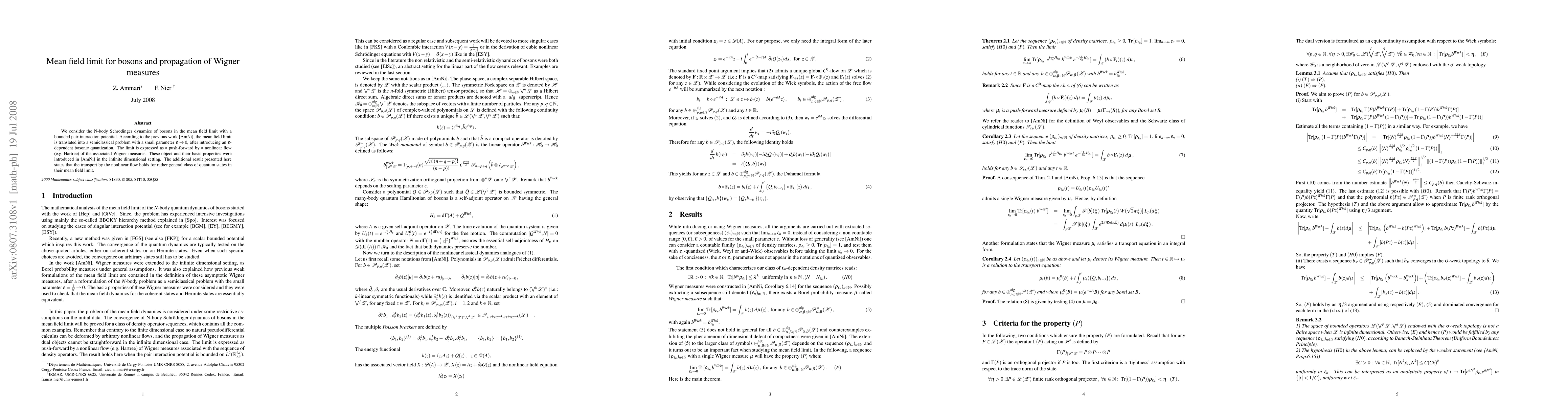 This paper investigates the mean field limit of N-body Schrödinger dynamics for bosons with bounded pair-interaction potentials, translating it into a semiclassical problem involving a small parameter $\epsilon$. It shows that the limit can be expressed as a push-forward by a nonlinear flow of Wigner measures, extending the results to a broader class of quantum states.