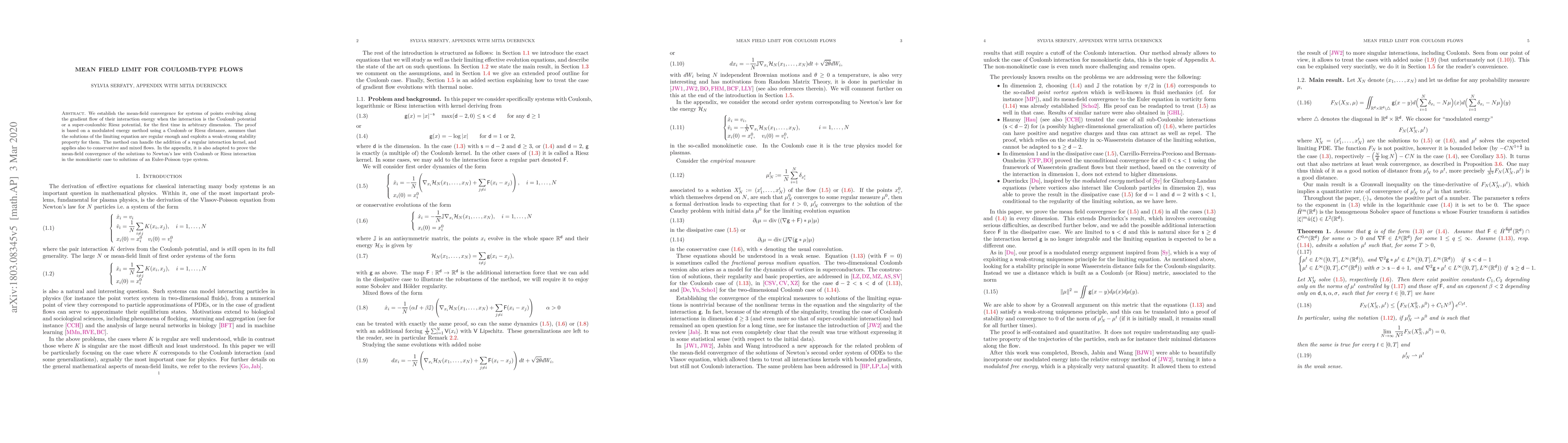This paper establishes mean-field convergence for systems of points evolving under Coulomb or Riesz potential interactions, using a modulated energy method and weak-strong stability properties. The method also applies to conservative and mixed flows, and extends to Newton's law in the monokinetic case.
