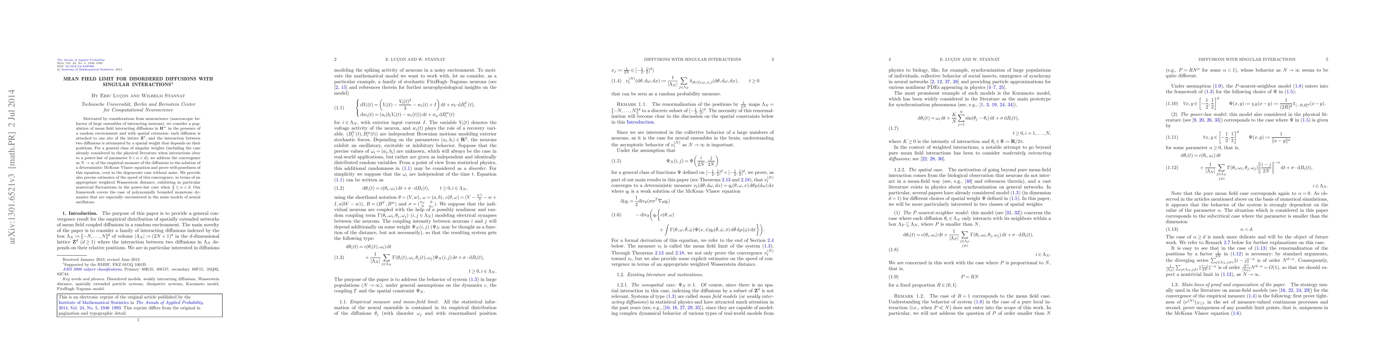 ensembles of interacting neurons), we consider a population of mean field