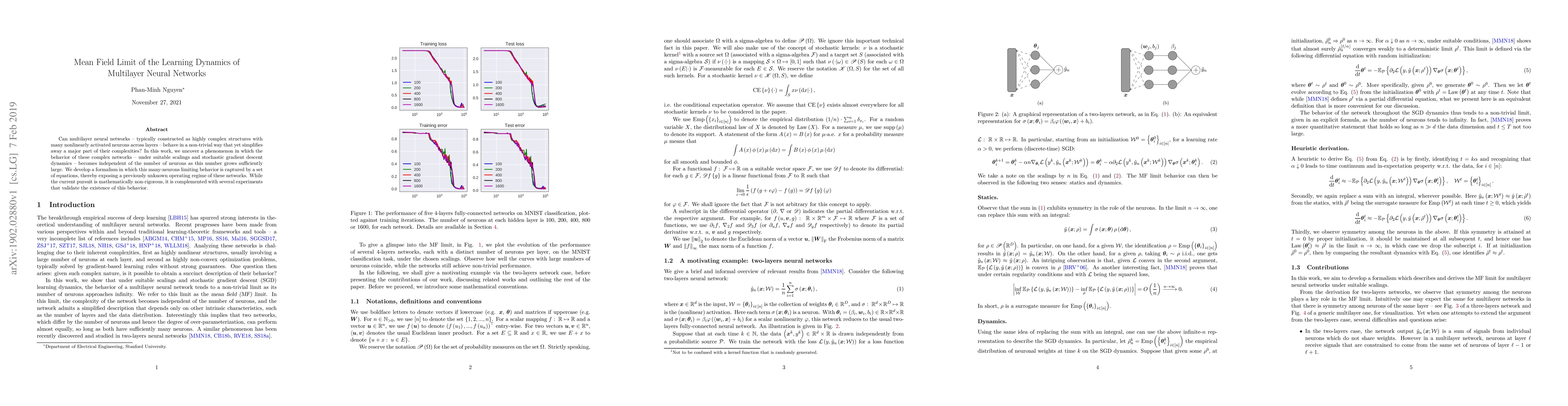 This paper explores how multilayer neural networks simplify under large neuron scalings, revealing a mean field limit where their dynamics become independent of neuron count. Although mathematically non-rigorous, the findings are supported by experiments demonstrating this new operating regime.