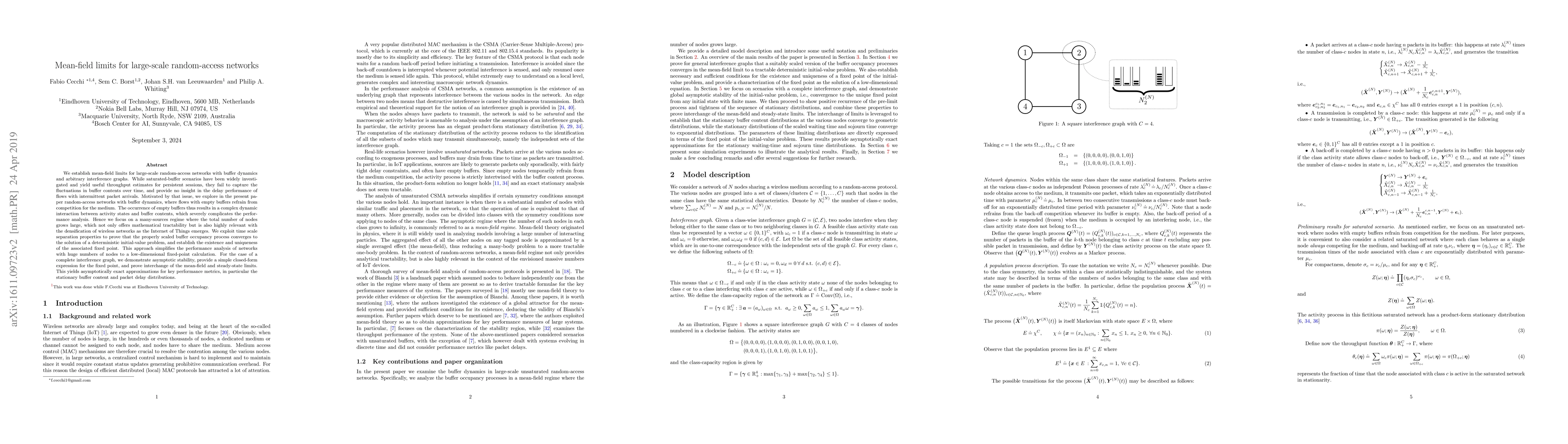 We establish mean-field limits for large-scale random-access networks with buffer dynamics and arbitrary interference graphs. While saturated-buffer scenarios have been widely investigated and yield useful throughput estimates for persistent sessions, they fail to capture the fluctuations in buffer contents over time, and provide no insight in the delay performance of flows with intermittent packet arrivals. Motivated by that issue, we explore in the present paper random-access networks with buffer dynamics, where flows with empty buffers refrain from competition for the medium. The occurrence of empty buffers thus results in a complex dynamic interaction between activity states and buffer contents, which severely complicates the performance analysis. Hence we focus on a many-sources regime where the total number of nodes grows large, which not only offers mathematical tractability but is also highly relevant with the densification of wireless networks as the Internet of Things emerges. We exploit time scale separation properties to prove that the properly scaled buffer occupancy process converges to the solution of a deterministic initial-value problem, and establish the existence and uniqueness of the associated fixed point. This approach simplifies the performance analysis of networks with huge numbers of nodes to a low-dimensional fixed-point calculation. For the case of a complete interference graph, we demonstrate asymptotic stability, provide a simple closed-form expression for the fixed point, and prove interchange of the mean-field and steady-state limits. This yields asymptotically exact approximations for key performance metrics, in particular the stationary buffer content and packet delay distributions. The methodological framework that we develop easily extends to various model refinements as will be illustrated by several examples.
