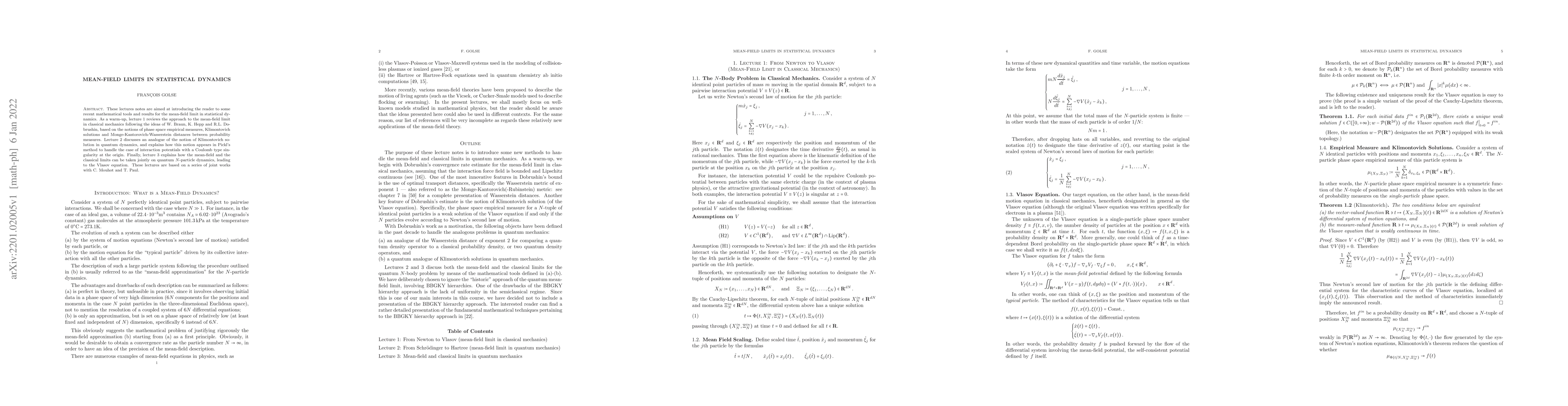 This paper introduces mathematical tools for mean-field limits in statistical dynamics, starting with classical mechanics and phase space empirical measures, then exploring quantum dynamics and the Vlasov equation, and culminating in joint classical and quantum mean-field limits. The work is based on collaborative research with C. Mouhot and T. Paul.