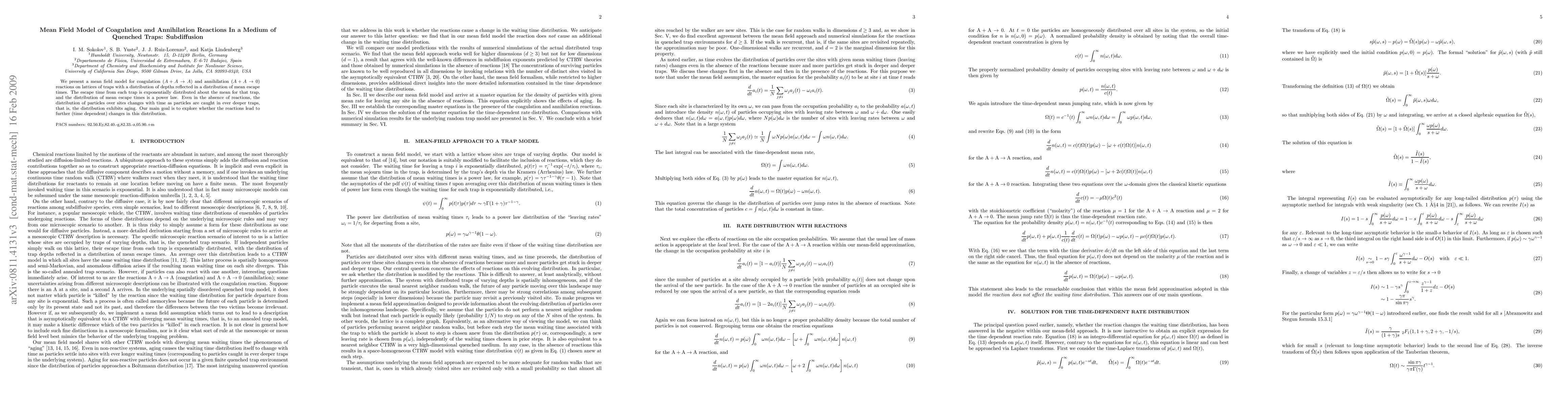 We present a mean field model for coagulation ($A+A\to A$) and annihilation ($A+A\to 0$) reactions on lattices of traps with a distribution of depths reflected in a distribution of mean escape times. The escape time from each trap is exponentially distributed about the mean for that trap, and the distribution of mean escape times is a power law. Even in the absence of reactions, the distribution of particles over sites changes with time as particles are caught in ever deeper traps, that is, the distribution exhibits aging. Our main goal is to explore whether the reactions lead to further (time dependent) changes in this distribution.