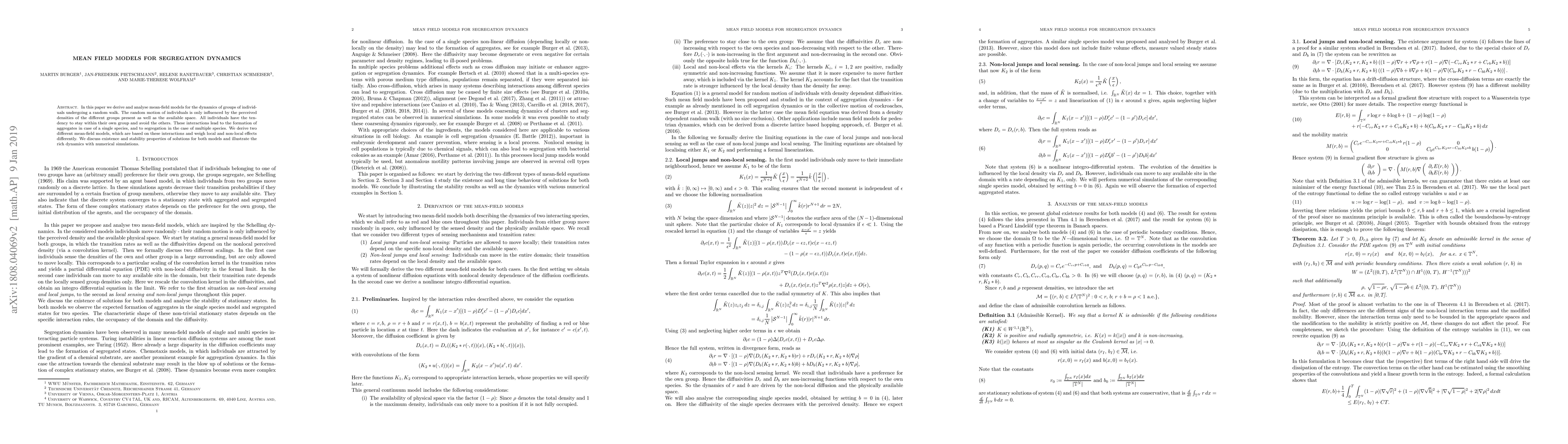 Researchers derived mean-field models to study group segregation dynamics, revealing how individual interactions lead to aggregate formation in single-species groups and segregation in multi-species groups.