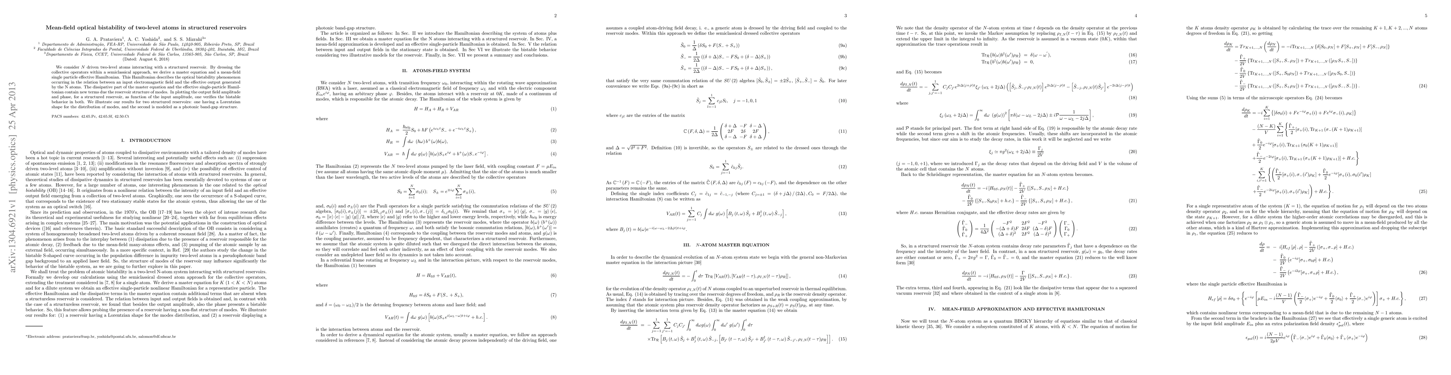 This paper investigates the optical bistability in N driven two-level atoms interacting with structured reservoirs, deriving a mean-field Hamiltonian and a master equation that reveal bistable behavior in the input-output electromagnetic field relationship. The study demonstrates bistable behavior for two types of structured reservoirs: one with a Lorentzian mode distribution and one with a photonic band-gap structure.