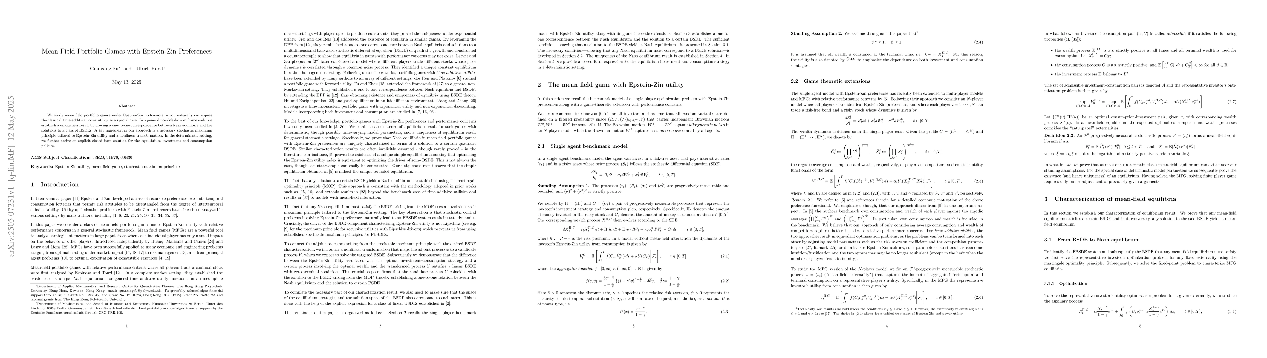 This work extends existing mean field game theory by incorporating Epstein-Zin preferences, providing new insights into portfolio games and offering explicit solutions in deterministic settings not previously addressed.