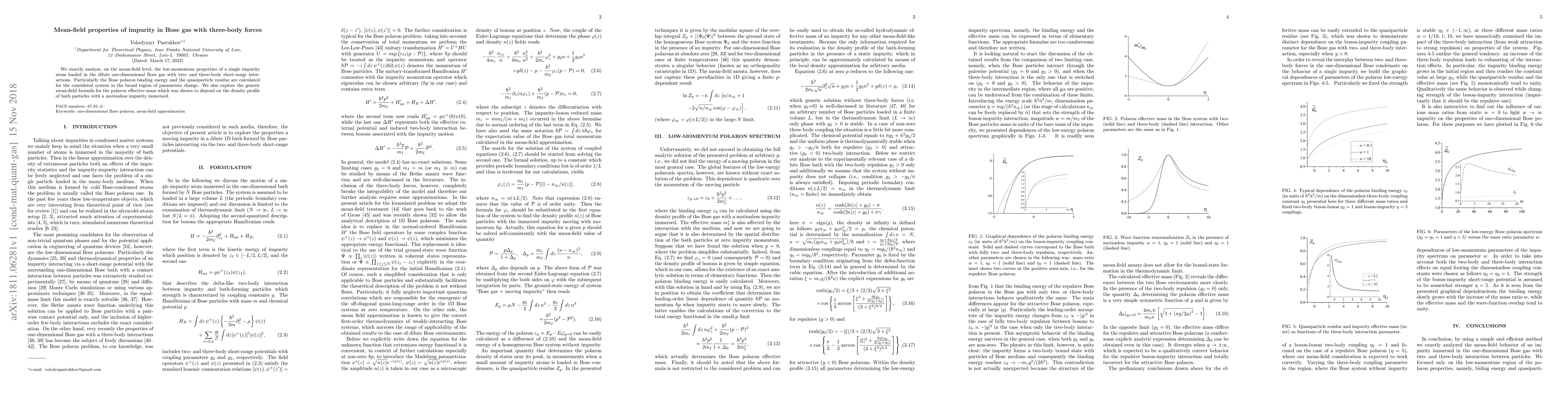 We exactly analyze, on the mean-field level, the low-momentum properties of a single impurity atom loaded in the dilute one-dimensional Bose gas with two- and three-body short-range interactions. Particularly the Bose polaron binding energy and the quasiparticle residue are calculated for the considered system in the broad region of parameters change. We also explore the generic mean-field formula for the polaron effective mass which was shown to depend on the density profile of bath particles with a motionless impurity immersed.