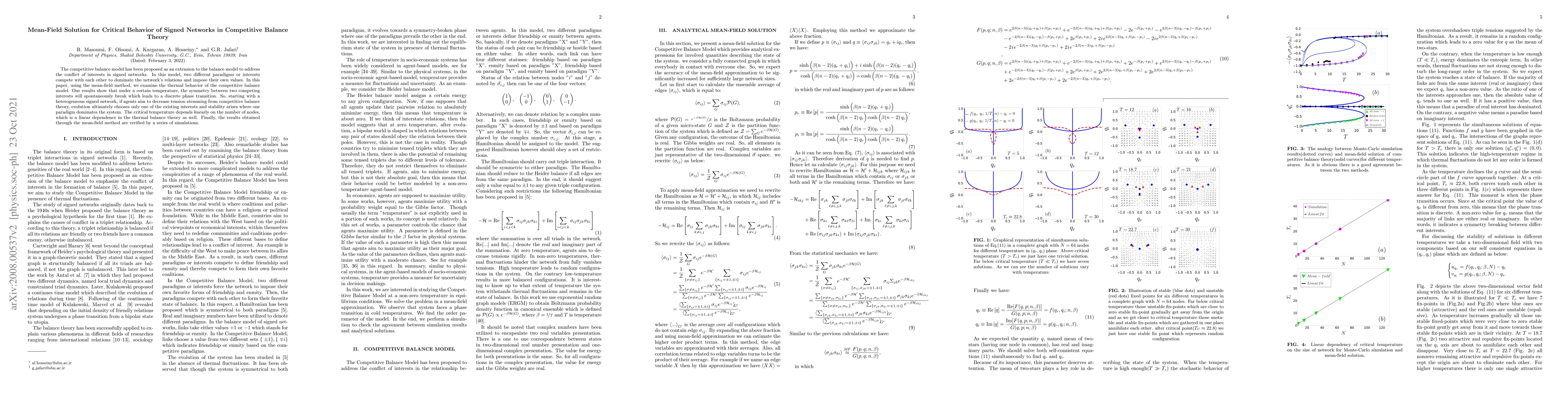 Competitive balance model has been proposed as an extension to the balance model to address the conflict of interests in signed networks arXiv:2001.04664 . In this model two different paradigms compete with each other due to the competitive interests to dominate the system and impose their own values. Using mean-field solution method in this paper, we examine the thermal behavior of the competitive balance model. Our results show that under a certain temperature, the symmetry between two competitive interests will spontaneously break which leads to a discrete phase transition. So, starting with a heterogeneous signed network, if agents aim to ultimately decrease tension stemming from balance theory, evolution ultimately chooses only one of the existing interests and stability arises where one paradigm dominates the network. The critical temperature depends linearly on the number of nodes, which was a linear dependence in the thermal balance theory as well. Finally the results obtained through the mean-field theory are verified by a series of simulations.