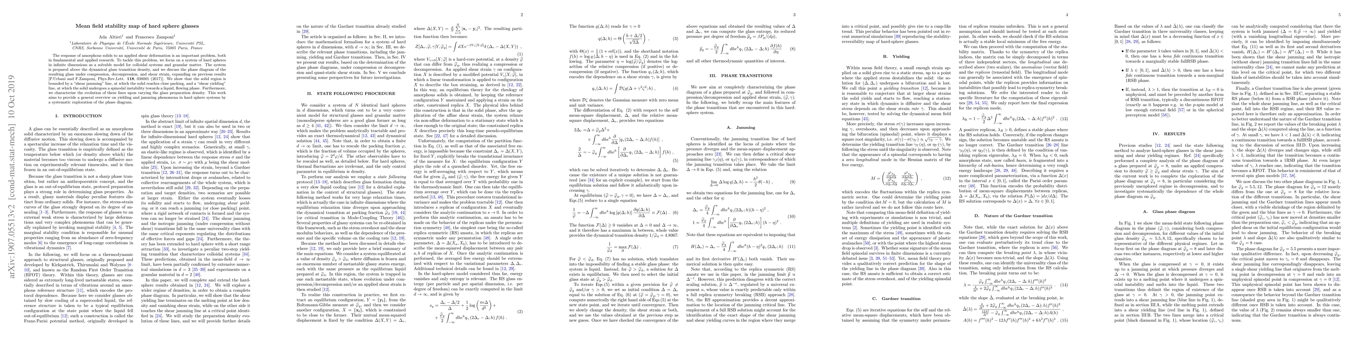 This paper investigates the phase diagram of hard-sphere glasses under various deformations, identifying "shear jamming" and "shear yielding" lines that delineate solid and liquid phases. It provides insights into the stability and transition behaviors in amorphous solids, enhancing understanding of yielding and jamming phenomena.